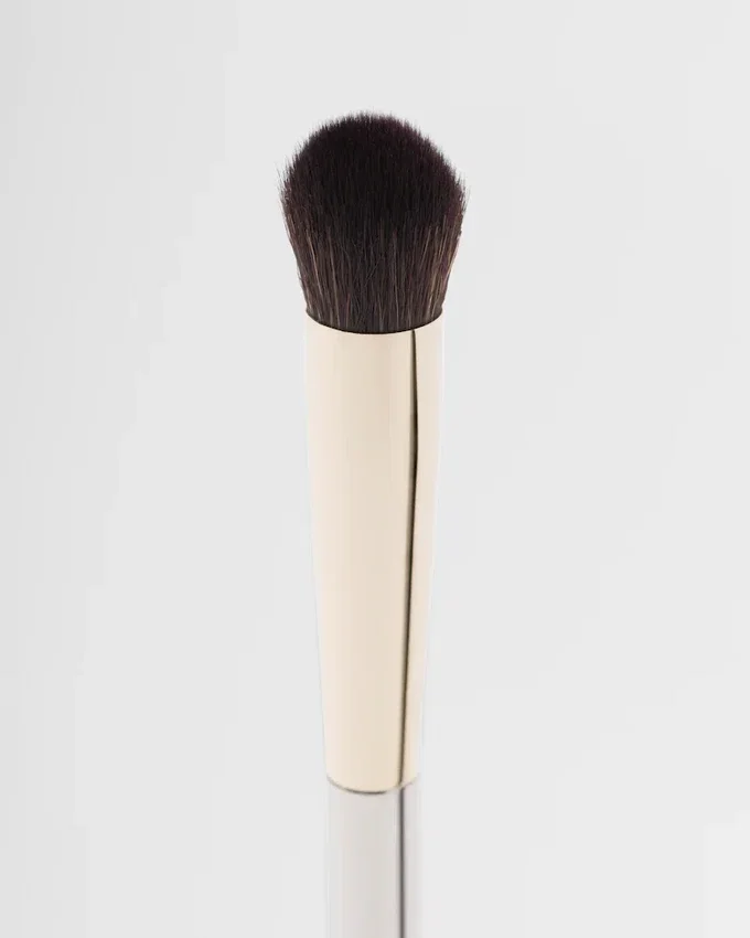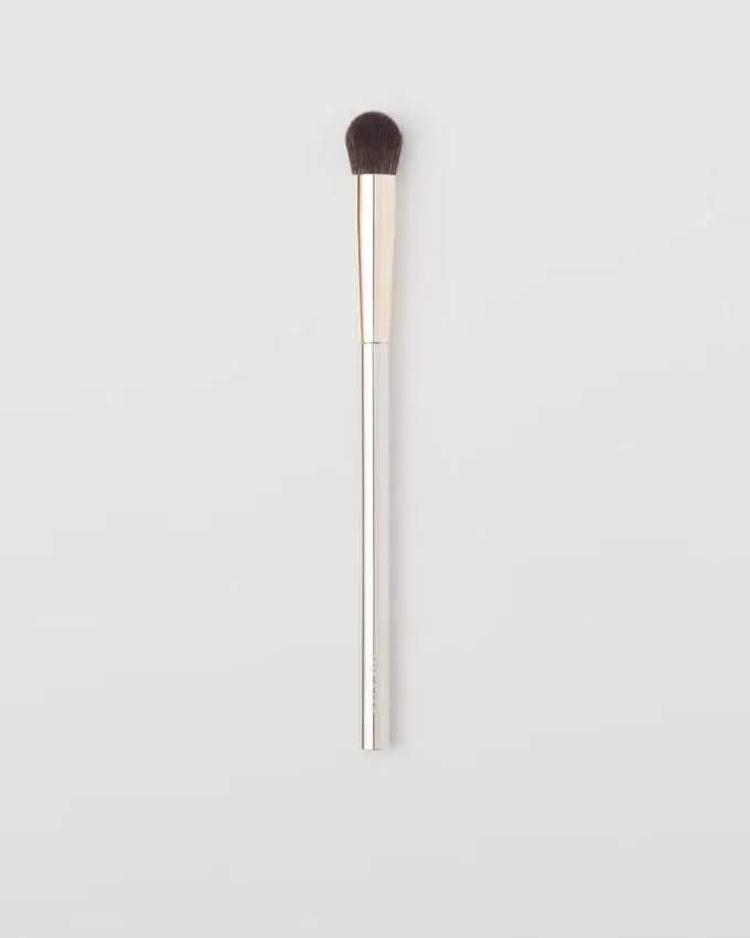 コンシーラー・バフィング・ブラシは、リキッド、クリーム、パウダー状のテクスチャーをコントロールしながら塗布できるよう、ラウンド形状にデザインされています。パッケージには、ブラシを保護するためのベルベットのポーチが付属しています。Prada.comおよび一部の販売店でのみ販売されています。
