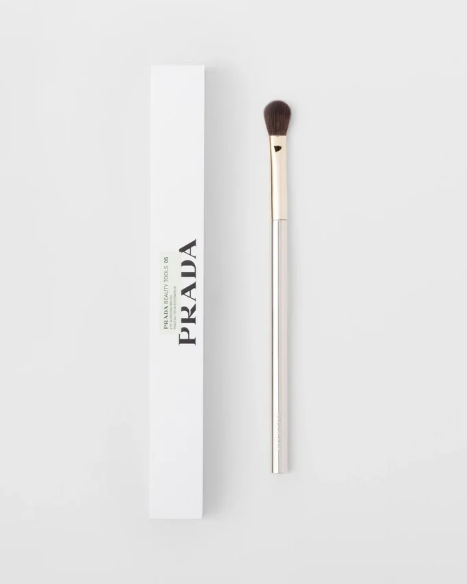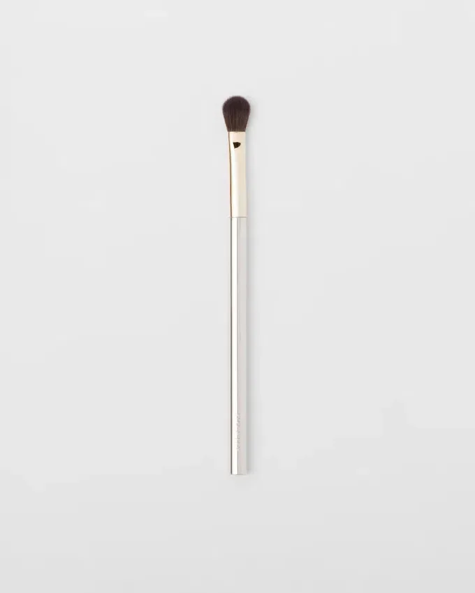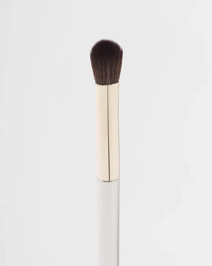 アイ・ブレンディング・ブラシは、パウダー、クリーム、リキッドなどあらゆるテクスチャーに対応できるよう、フラットで丸みを帯びた形状にデザインされています。このふわふわとしたブラシは、まぶたに優しく柔軟にフィットし、最適なブレンドを実現する万能なメイクアップツールです。ブラシを保護するためのベルベットのポーチが付属しています。Prada.comおよび一部の取扱店でのみ販売されています。