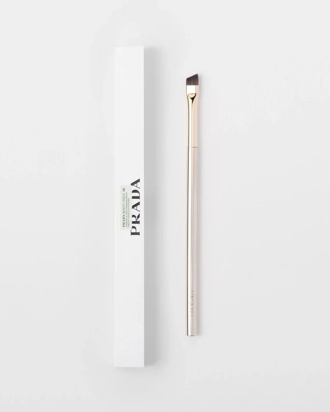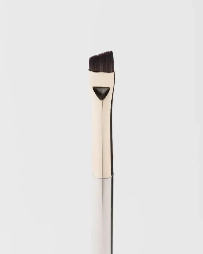 フラットでアングル形状のこのブロウ&アイライナーブラシは、パウダー、クリーム、リキッドタイプのあらゆるテクスチャーをシャープかつ濃密に塗布し、瞬時に輪郭を際立たせます。パッケージにはブラシを保護するためのベルベットのポーチが付属しています。PRADA.comおよび一部の販売店でのみ販売されています。