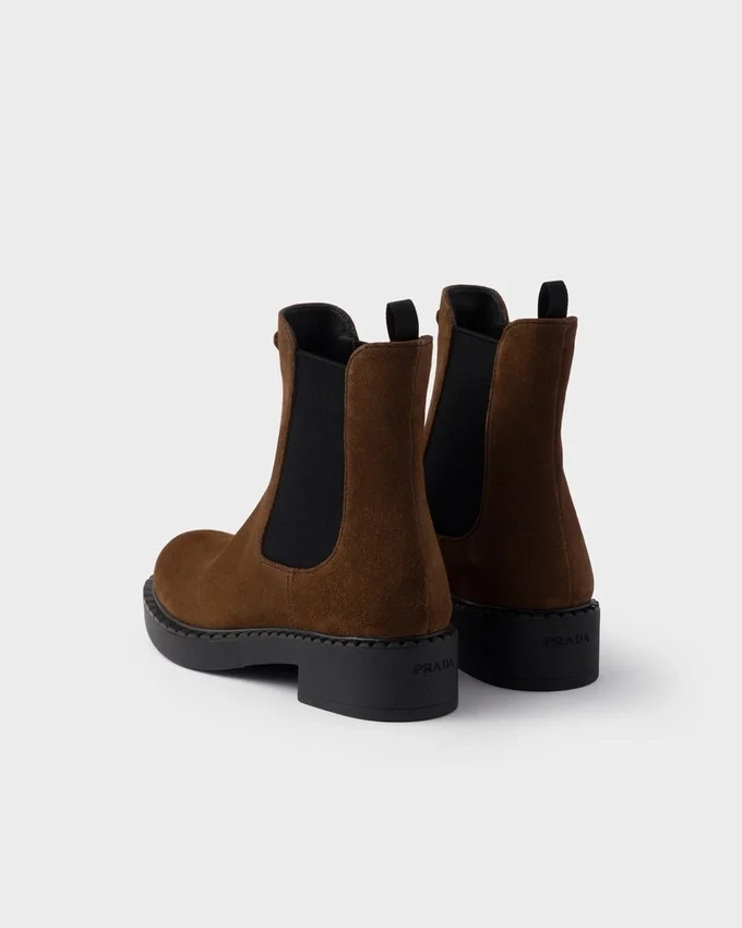 このスエード製チェルシーブーツは、洗練されたラインが特徴のモダンなデザインです。カジュアルな魅力と職人技による洗練さを兼ね備えた汎用性の高いシルエットに、快適なラバーソールが組み合わされています。エナメル加工されたメタル製の三角ロゴが、その際立ったシグネチャーとしてスタイルを引き立てます。