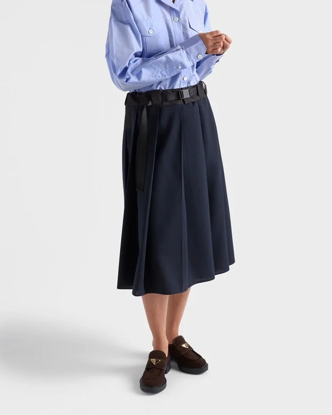 Pradaの世界観を象徴する「Chocolateローファー」は、汎用性が高く現代的なスタイルを体現しています。このハイブリッドなスタイルは、クラシックな素材とディテールに加え、特徴的な分厚いラバーソールによって引き立てられたモダンなボリューム感のシルエットが特徴です。スエード素材と、エナメル加工されたメタル製の三角ロゴが施されたこのシューズは、新たな魅力を放っています。