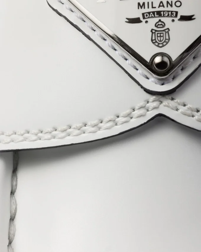 象徴的なエナメル加工の三角ロゴが際立つ、レトロなインスピレーションを受けたこのローファーは、クラシックな高級靴に伝統的に使用されてきたブラッシュドレザーで作られています。Pradaのコレクションでは、予想外のデザインで再解釈され、ブランドの二面性を反映したハイブリッドな仕上がりとなっています。靴の周囲を囲むウェルトのノッチ加工が、ハンドメイドの風合いを演出しています。