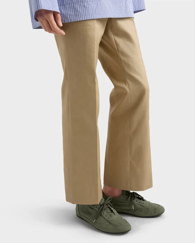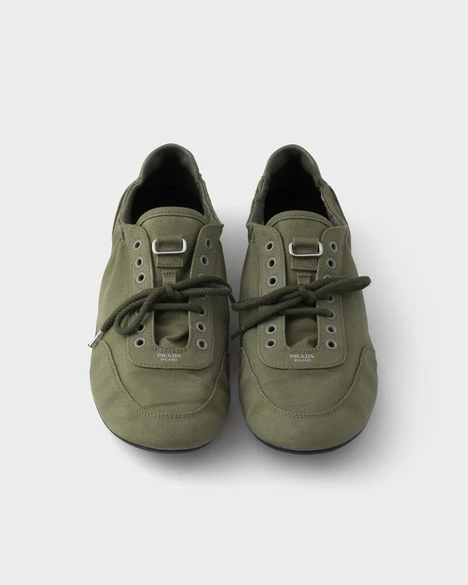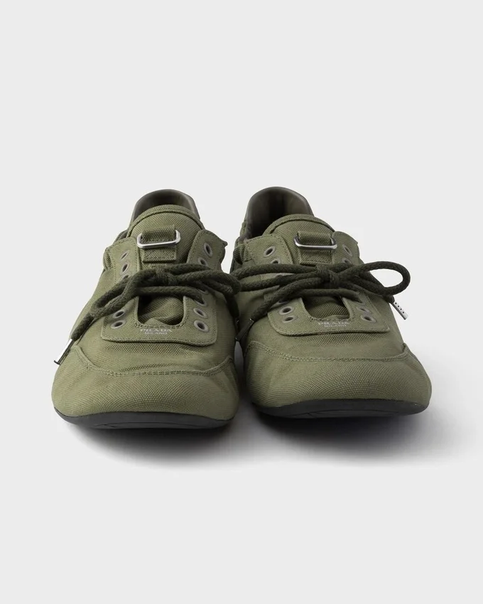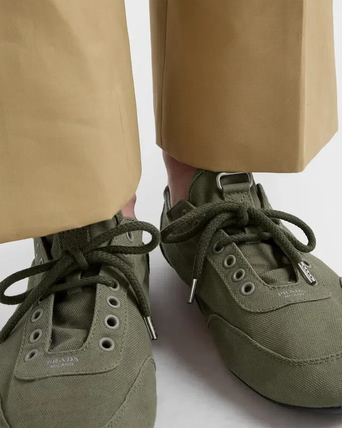「Collapse」スニーカーは、軽量で柔軟、デコンストラクテッドなデザインにより、Pradaのスポーティで職人技あふれる精神を体現しています。キャンバス地で再解釈されたこのシューズは、ヴィンテージ加工が施され、そのカジュアルな個性とリラックスした雰囲気を際立たせています。