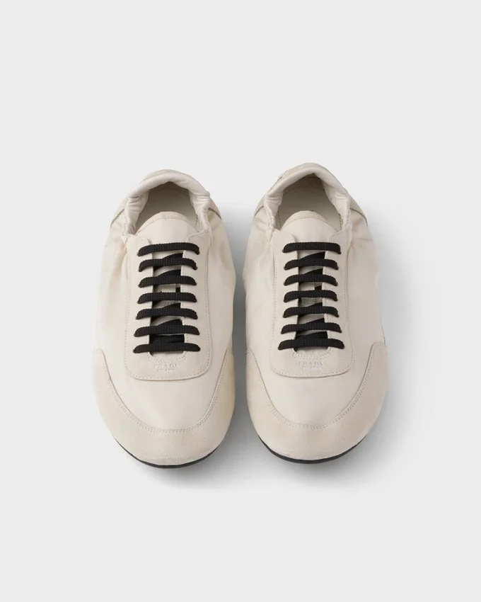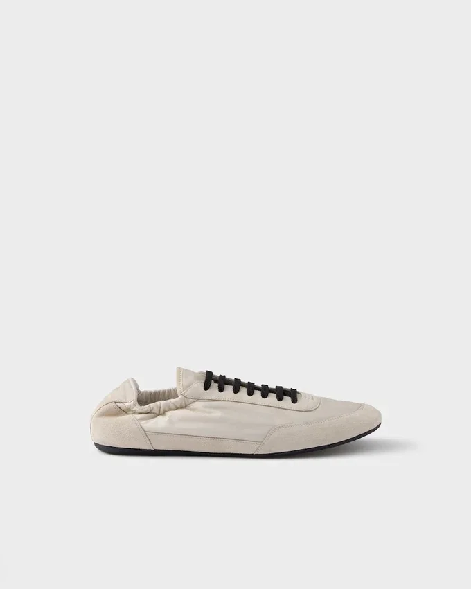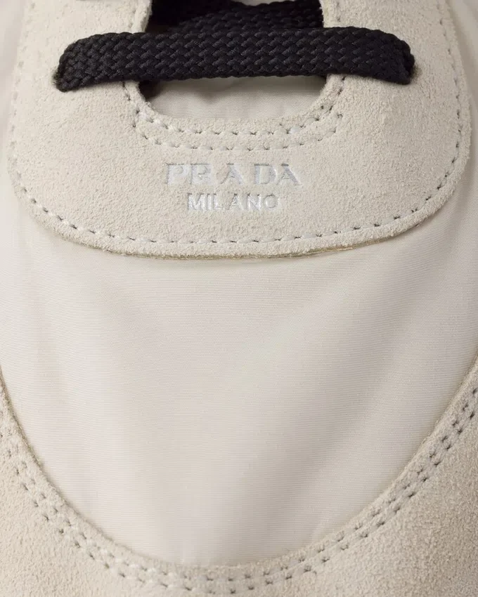 Re-Nylonとスエードを使用した、構造的なデザインが特徴のこの驚くほど軽量なスニーカーは、Pradaのスポーティで職人技あふれる精神を体現する素材の組み合わせが特徴です。フラットソールはクラシックなバレリーナシューズを彷彿とさせ、サイドに施された伸縮性のある素材により、簡単に履き脱ぎが可能です。本製品は「Sea Beyond」教育プログラムの対象外となります。