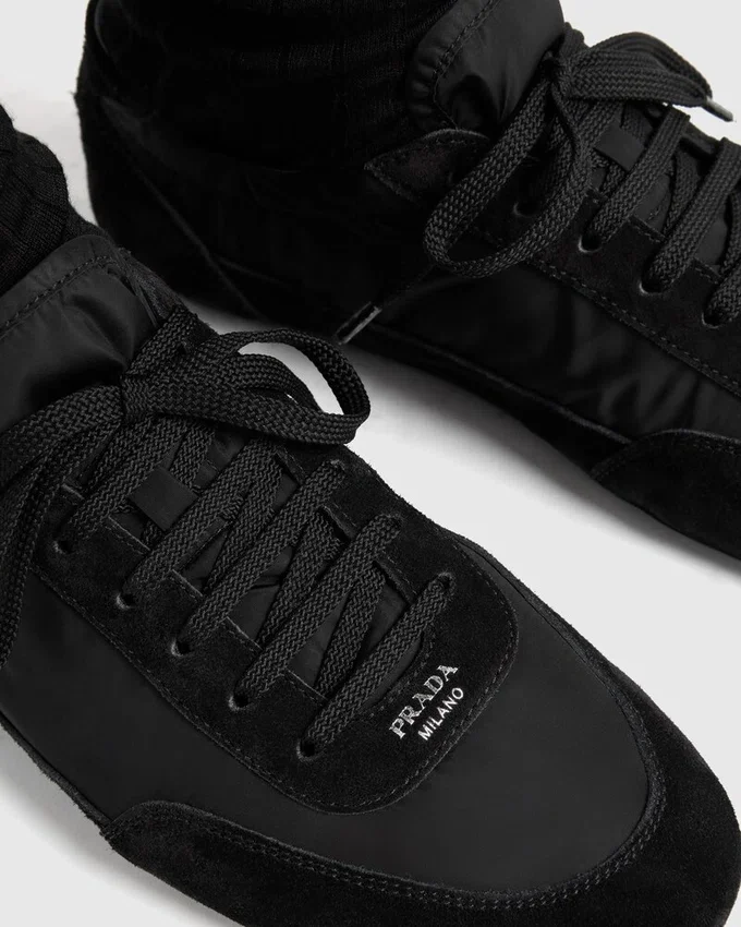 Re-Nylonとスエードを使用した、構造的なデザインが特徴のこの驚くほど軽量なスニーカーは、PRADAのスポーティで職人技あふれる精神を体現する素材の組み合わせを採用しています。フラットソールはクラシックなバレリーナシューズを彷彿とさせ、サイドの伸縮性のある素材により、簡単に履き脱ぎが可能です。本製品は「Sea Beyond」教育プログラムへの寄付対象外です。