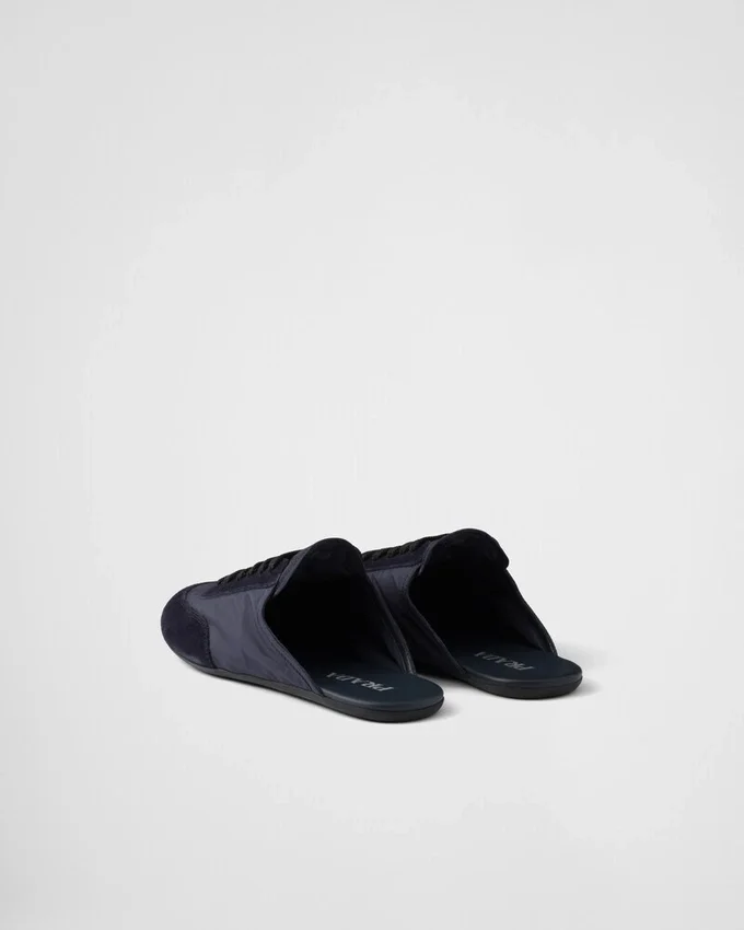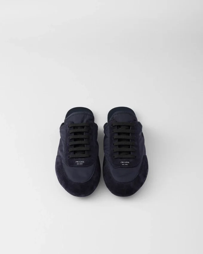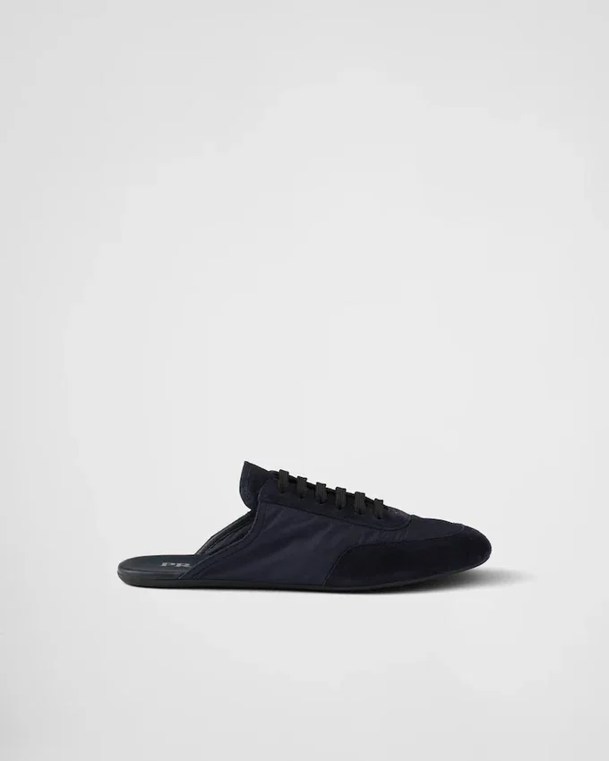 革新的なハイブリッドシルエットを特徴とするこのミュールは、PRADAのスポーティで職人技あふれる精神を体現しています。Re-Nylonとスエードレザーで作られ、フラットソールとヴィンテージ仕上げが、柔らかく軽やかなデザインに個性を添えています。本製品は「Sea Beyond」教育プログラムの対象外となります。