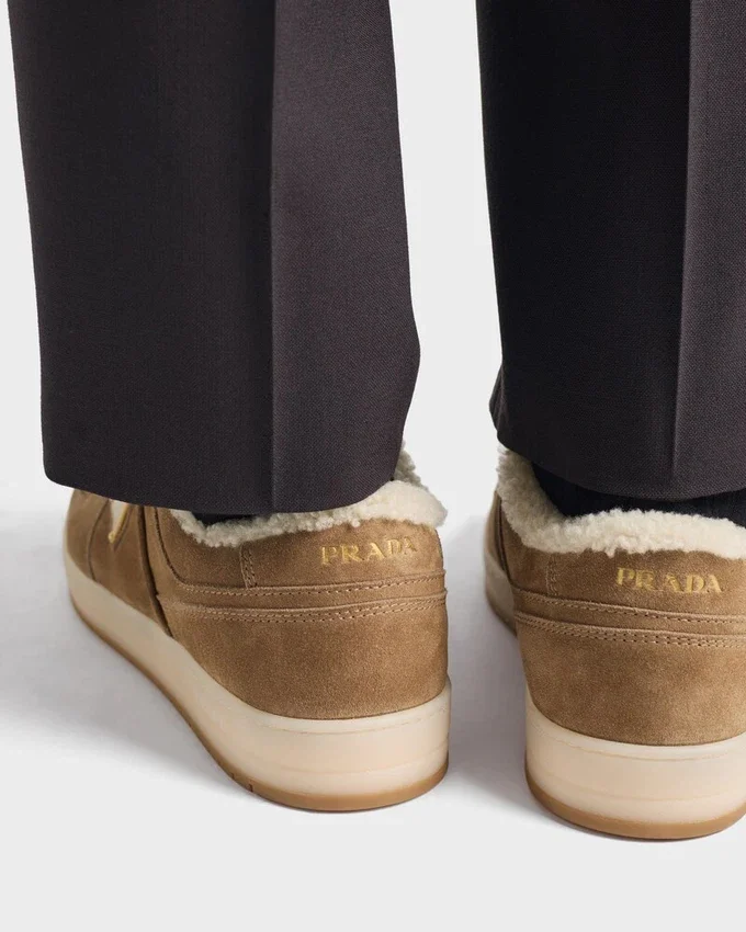 バスケットボールシューズからインスピレーションを得たDowntownスニーカーは、スポーティなデザインと、個性的で洗練されたディテールが際立っています。さまざまなバージョンのPRADAロゴをあしらったこの象徴的なスタイルは、スエード製で、柔らかなシープスキンの裏地が特徴です。