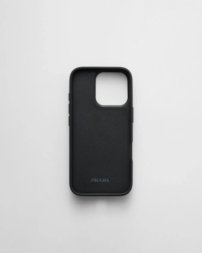 Saffianoレザー製のこのiPhone 16 Proケースは、洗練されたスタイリッシュなデザインで、象徴的なエナメル加工メタルトライアングルロゴがあしらわれています。