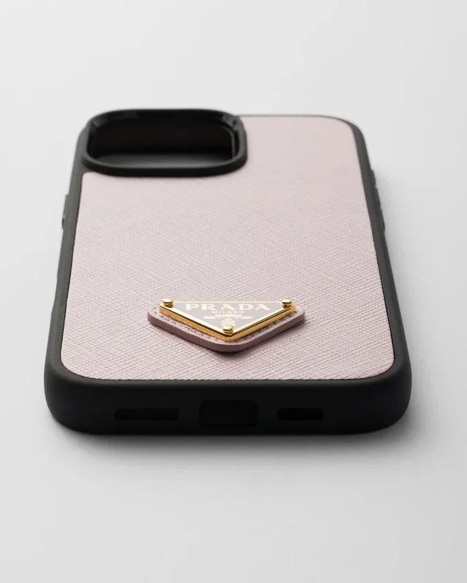 このiPhone 16 Pro Max用ケースは、Pradaの象徴的な要素を洗練されたモダンなデザインに融合させています。ワックス加工を施したSaffianoレザーのエレガントなクロスハッチテクスチャーが際立ち、エナメル加工されたメタルトライアングルロゴというアイコニックなシグネチャーがアクセントを加えています。