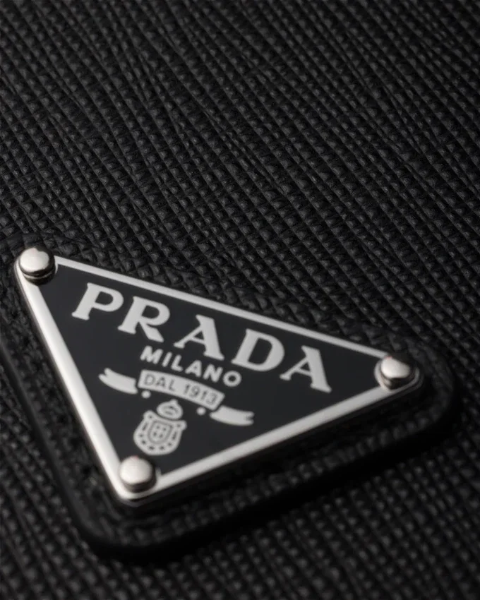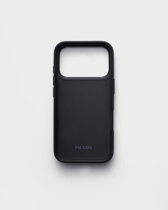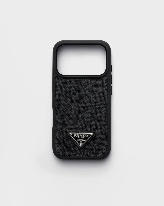 このiPhone 17 Pro用Saffianoレザーケースは、象徴的なエナメル加工メタルトライアングルロゴをあしらった、洗練されたスタイリッシュなデザインです。
