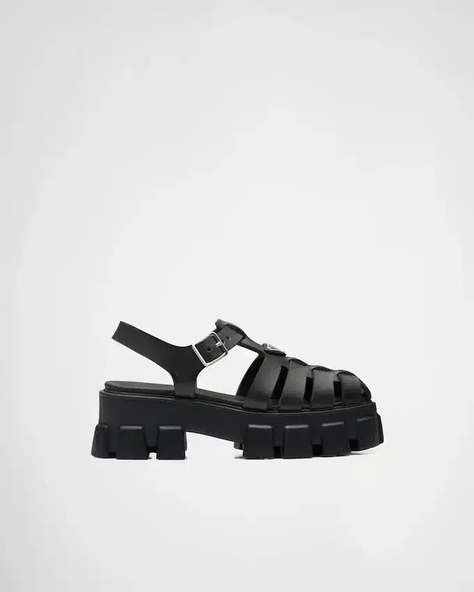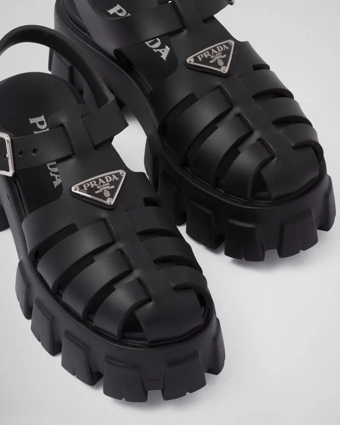 モダンなメンズウェアからインスピレーションを得たシルエットのこのフラットフォームサンダルは、Prada Triangleの象徴的な形状を彷彿とさせるキルティングディテールによってさらに際立っています。ナッパレザーで作られたスポーティなスタイルは、ボリューム感と軽量なラバーを融合させた特徴的なMonolithソールによって引き立てられ、Pradaの二面性を表現しています。