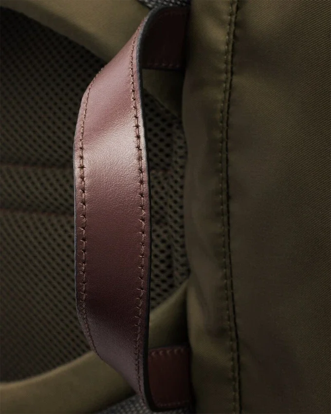 トレッキングスタイルから着想を得たこの「Re-Nylon」バックパックは、都会的なスタイルとアウトドアの要素を融合させています。レザーのトリムをあしらった広々としたデザインで、内外に複数のポケットを備え、背面に快適なパッド入りメッシュ生地を採用しています。機能性と装飾性を兼ね備えたテクニカルなディテールが、このモダンでスポーティーなアクセサリーを完成させています。 製品の特徴を保ち、マイクロファイバーの抜け落ちを抑えるため、頻繁な洗濯は避けてください。使用後は毎回風通しの良い場所で乾かし、ラベルに記載されている洗濯表示に従ってください。