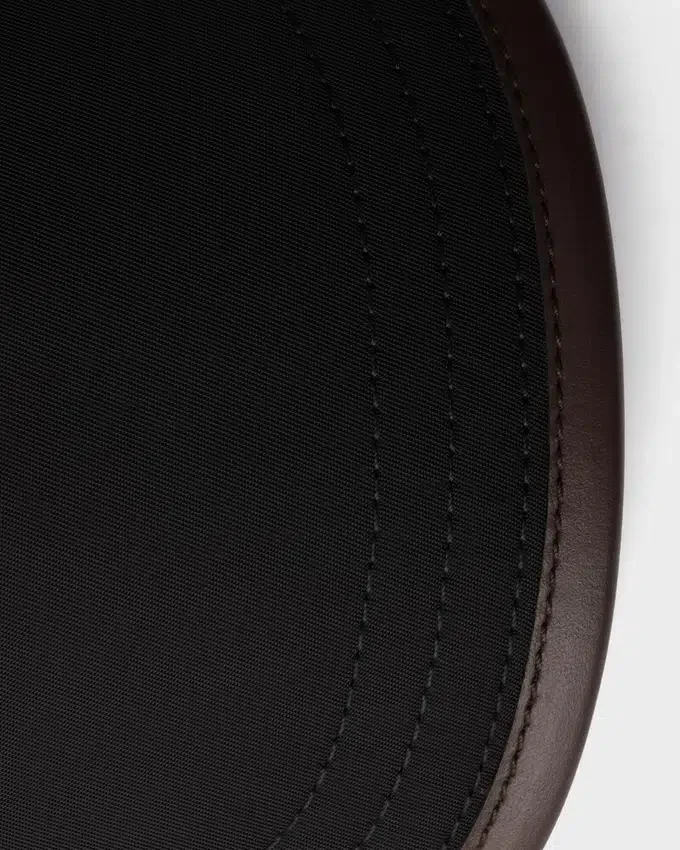 この「Re-Nylon」ベースボールキャップは、カジュアルで汎用性の高いデザインを彩るレザーのディテールが施されています。エナメル加工されたメタル製の三角ロゴが、このアクセサリーにシグネチャーのタッチを加えています。製品の特徴を保ち、マイクロファイバーの抜け落ちを抑えるためのサステナブルなケアとして、頻繁な洗濯は避けていただくことをお勧めします。