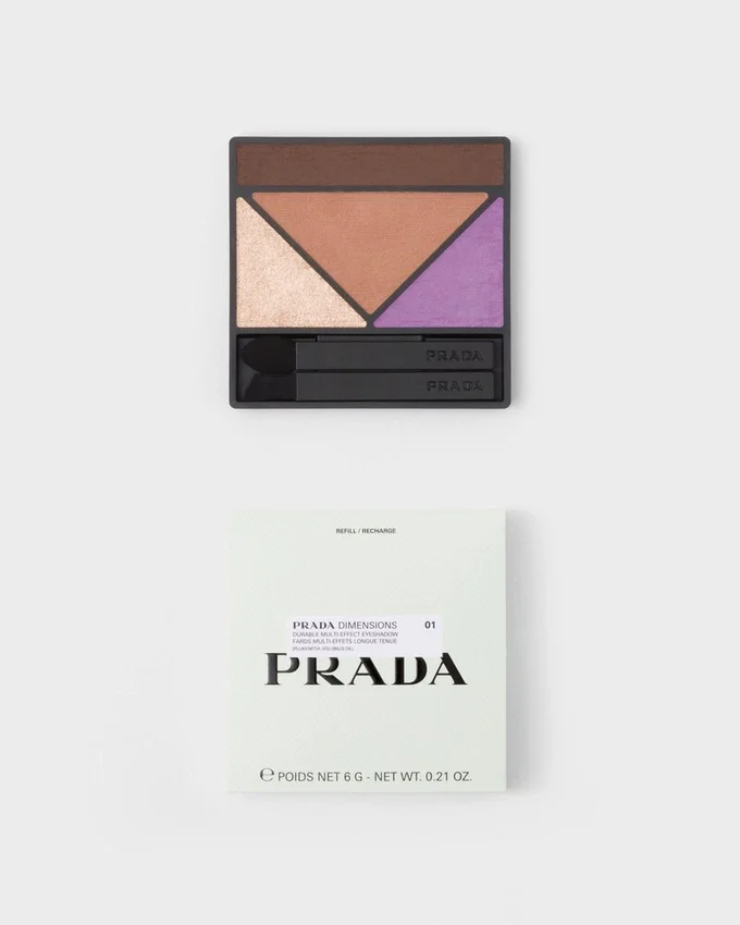 Prada ディメンションズ アイシャドウ パレットは、マイクロピクセル™顔料を用いた低圧射出成形プロセスによって製造されており、ひと塗りで高い発色力を実現します。 プルケネティア・ヴォルビリスオイルが、滑らかな塗り心地を実現し、まぶたをなめらかに見せてくれます。ハイブリッドなクリームパウダーアイシャドウは、粉落ちすることなくブレンドや重ね塗りが可能で、肌への親和性により、軽やかな着け心地と長持ちする持続力を提供します。