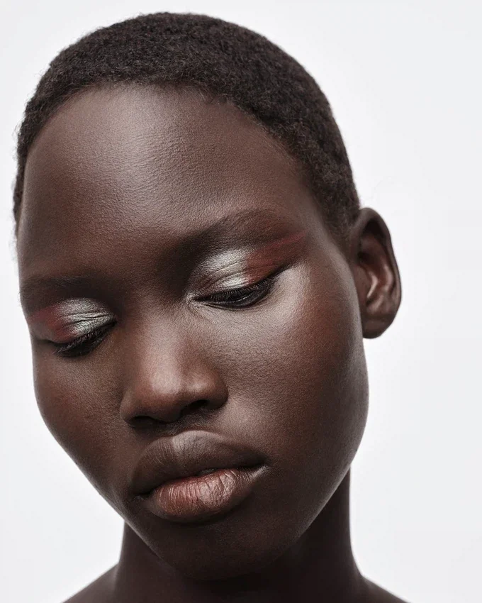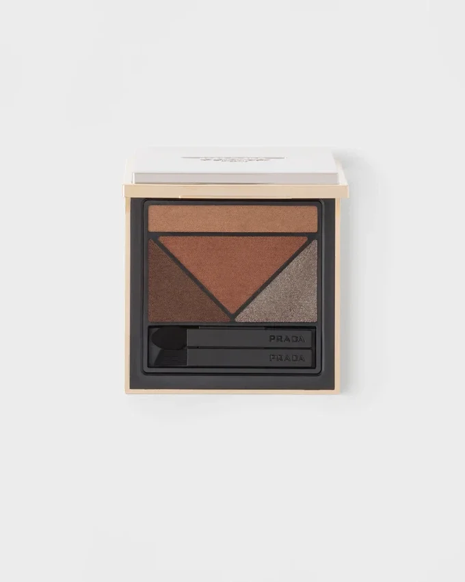 Prada Dimensions is inspired by iconic prints from the brand archives. Each eye palette combines three sophisticated neutrals with one eccentric accent color, creating a unique composition that offers satin, soft matte, hyper matte, and meta foil finishes. The Holo Nude collection reinterprets nude colors with a unique Prada point of view.