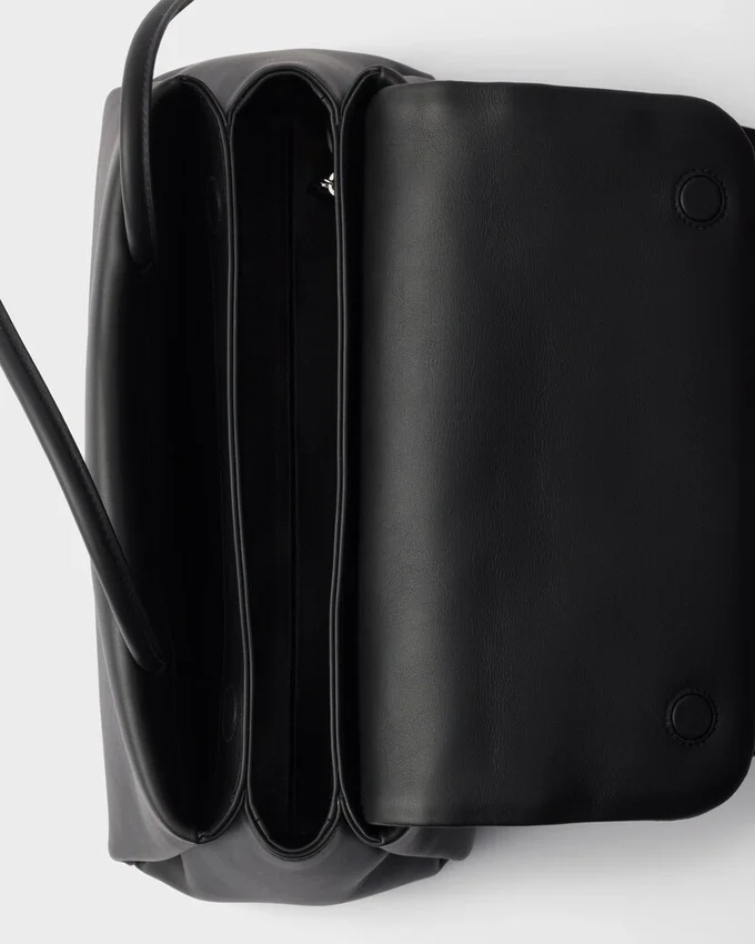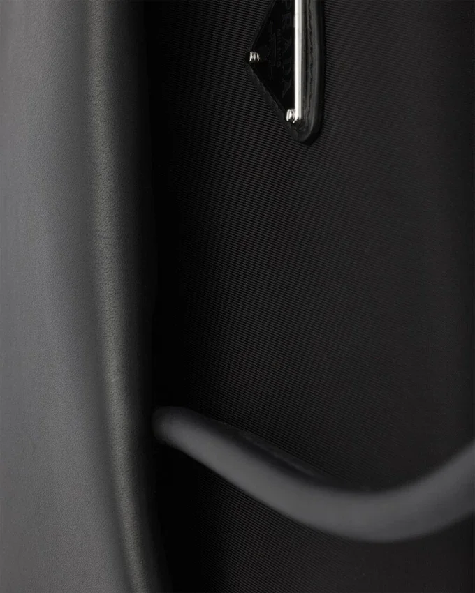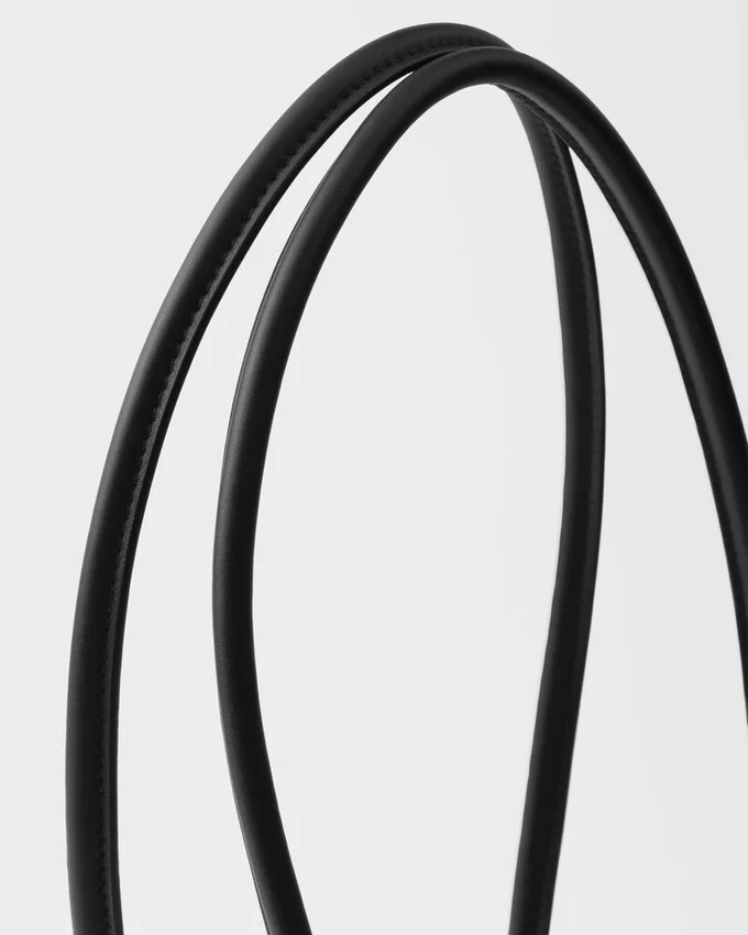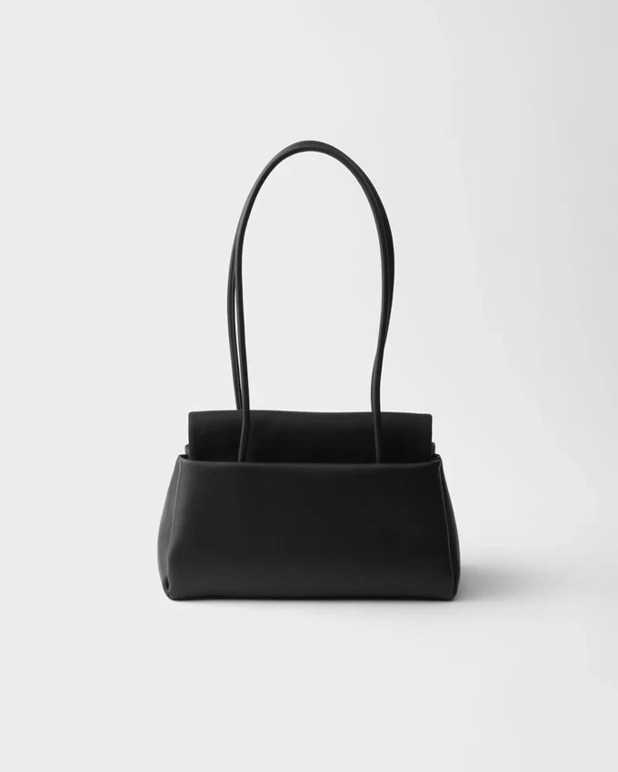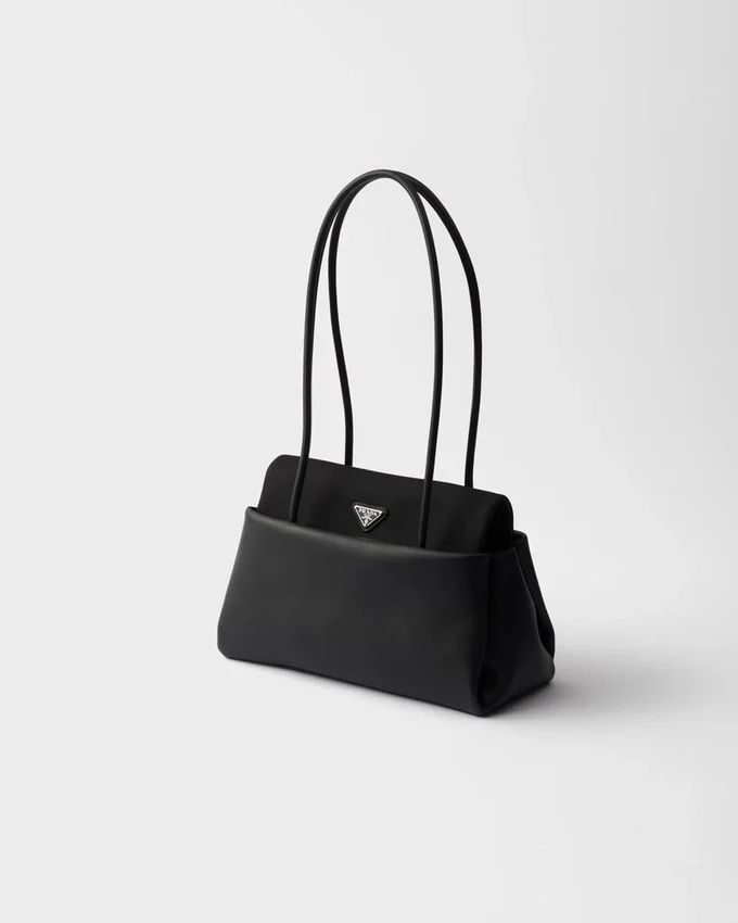 PRADAの「デュアル・エッセンス」が、確固たるエレガンスを備えたダイナミックなデザインとして具現化されました。「バッグ・イン・バッグ」というコンセプトは、洗練さと機能性の意外なバランスによって定義されています。シルエットは建築的なボリューム感で構成され、3つの内ポケットを備え、側面が柔らかく折りたたまれることで、直線的かつ立体的な効果を生み出しています。