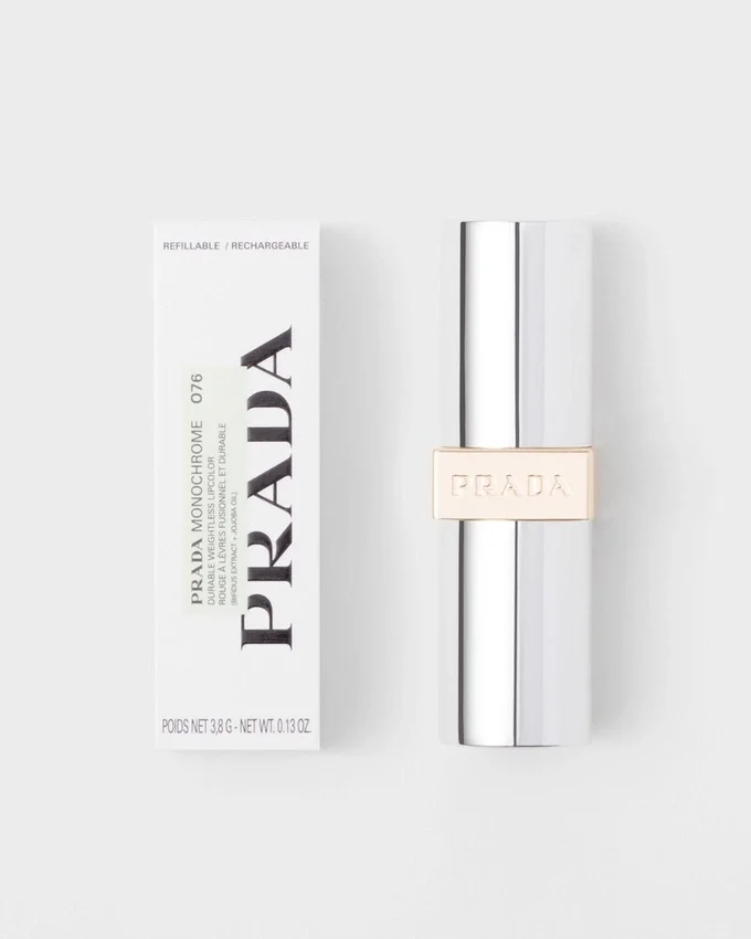 Prada モノクローム ハイパーマットは、アイコニックなSaffianoレザーからインスピレーションを得て、マットに新たな視点をもたらします。このリップスティックは、唇に触れると溶け込むような滑らかなテクスチャーにより高い発色力を実現し、一日中乾燥することなく、快適な着け心地を提供します。 三角形のスティック形状により、コントロールしやすく輪郭をきれいに描けるため、ワンストロークで濃密な発色と洗練された仕上がりを実現します。PRADA.comおよび一部の取扱店でのみ販売されています。