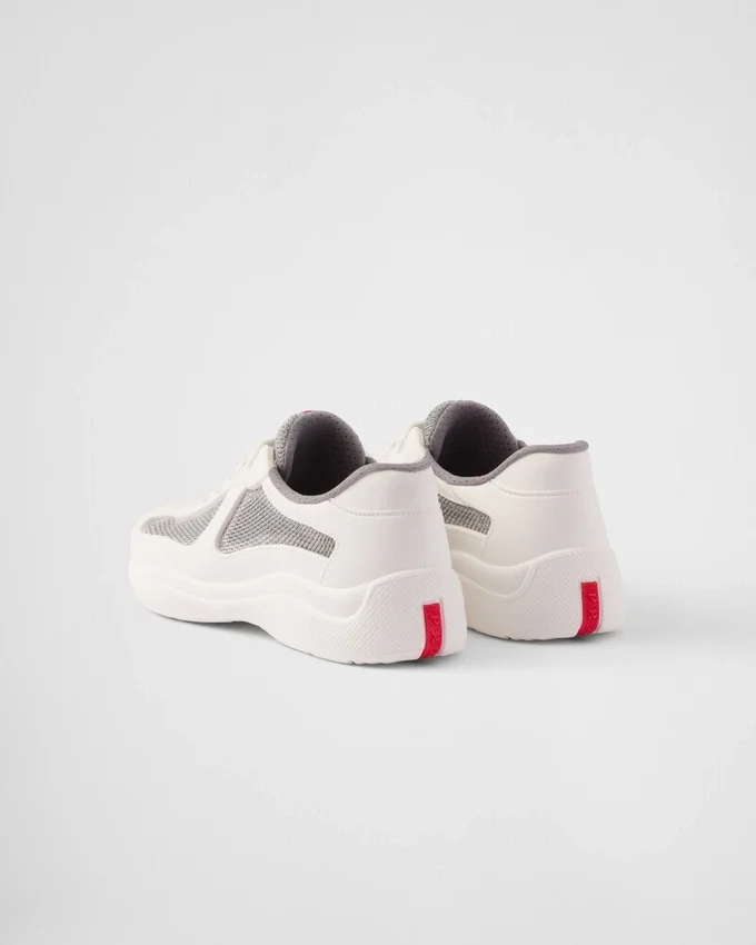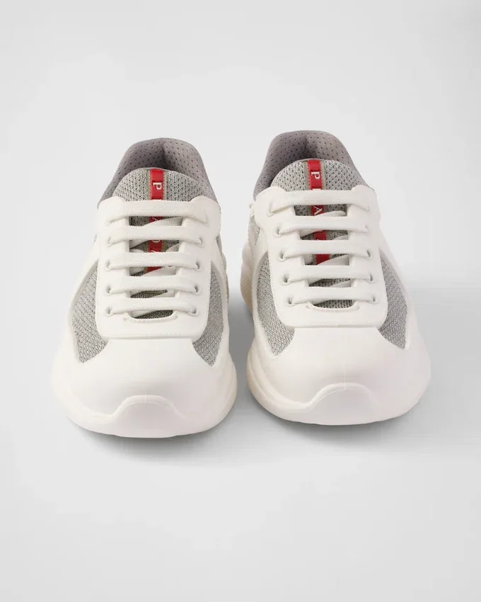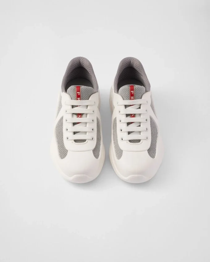 Pradaのアイデンティティの一部である「America’s Cupスニーカー」が、新しい素材とカラーリングによって再解釈され、現代的な精神を吹き込まれました。1990年代にルナ・ロッサのクルーのためにデザインされた、セーリングの世界からインスピレーションを得たこのレースアップシューズは、カラーラバーとバイクファブリックを組み合わせたデザインで登場します。 プラダ リネア・ロッサのロゴが、このスタイルの時代を超越した雰囲気を強調しています。
