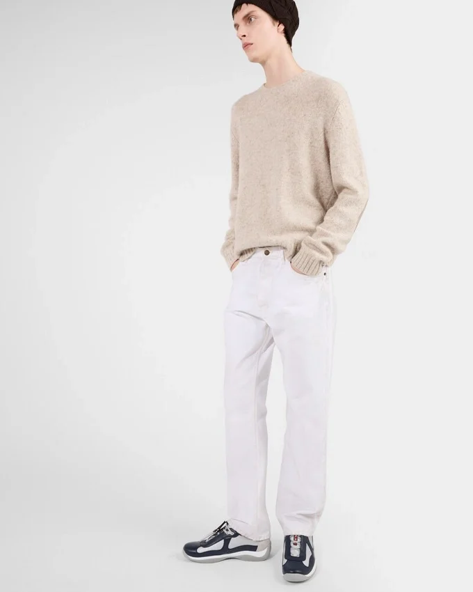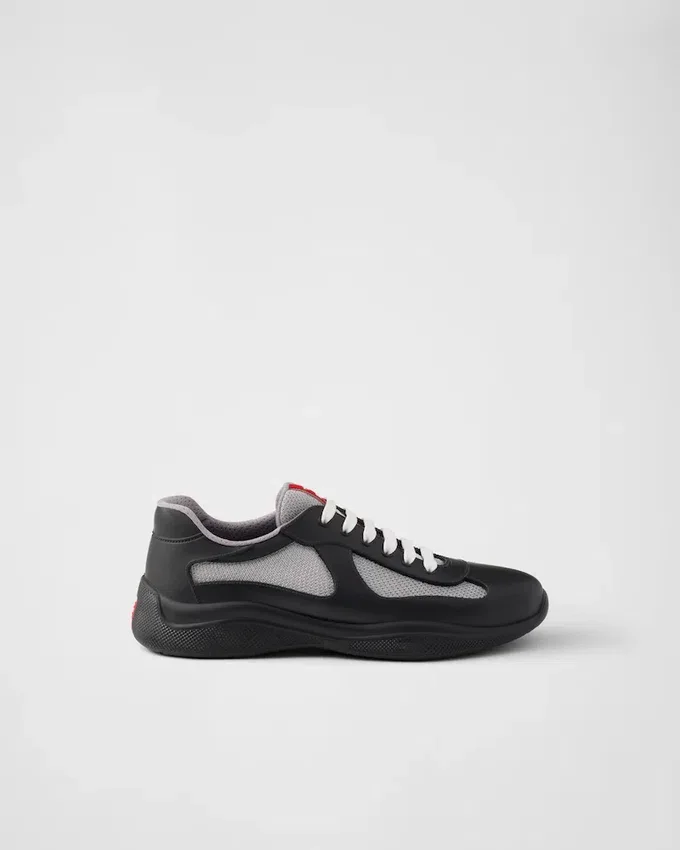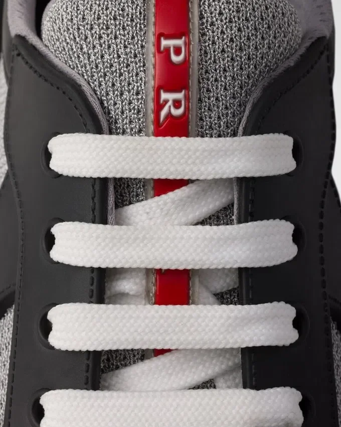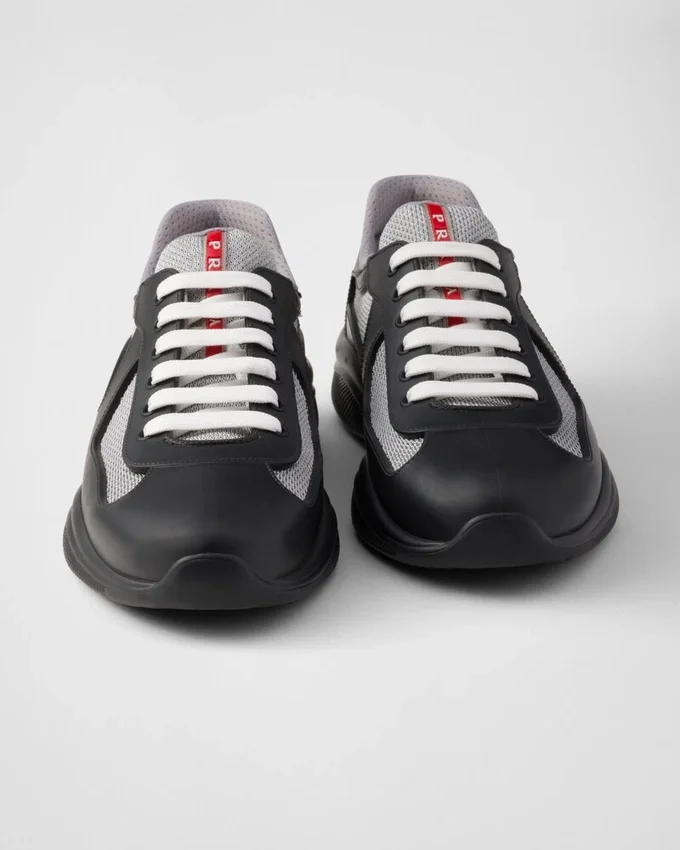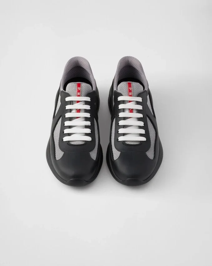 Pradaのアイデンティティの一部である「America’s Cup」スニーカーは、新しい素材とカラーリングによって再構築され、現代的な精神が吹き込まれています。1990年代にルナ・ロッサのクルーのためにデザインされた、セーリングの世界からインスピレーションを得たこのレースアップシューズは、カラーラバーとバイクファブリックを組み合わせたデザインで登場しました。 プラダ リネア・ロッサのロゴが、このスタイルの時代を超越した雰囲気を強調しています。
