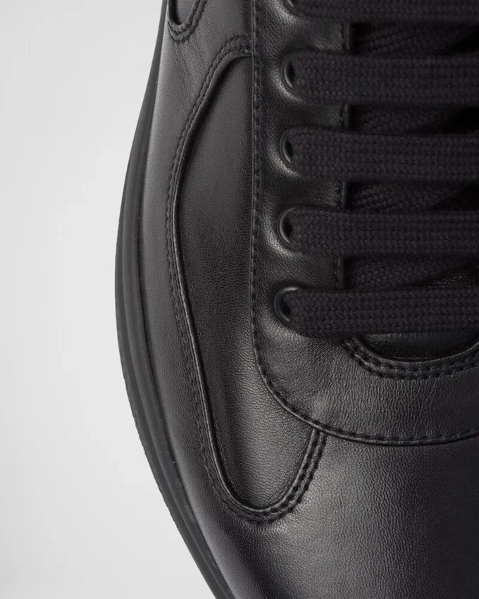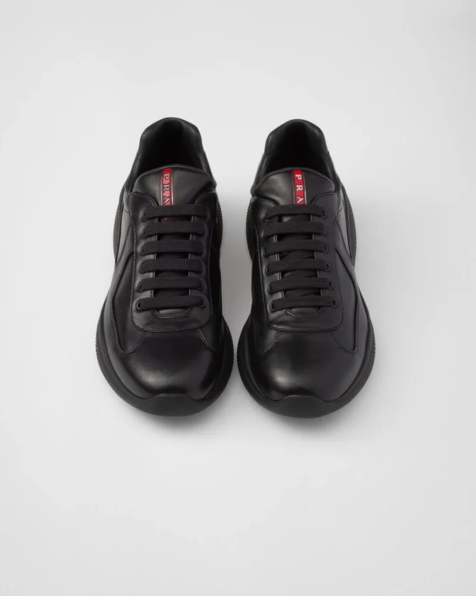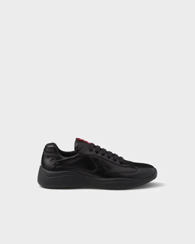 Pradaのアイデンティティの一部であり、1990年代にルナ・ロッサのクルーのためにデザインされた「America’s Cup スニーカー」が、オリジナルシューズのライン、ディテール、素材に着想を得たデザインで再提案されました。 セーリングの世界からインスピレーションを得たこのレースアップスタイルは、柔らかくも耐久性に優れたレザーと、通気性に優れた革新的なバイク用ファブリックを組み合わせ、分厚いラバーソールで仕上げられています。