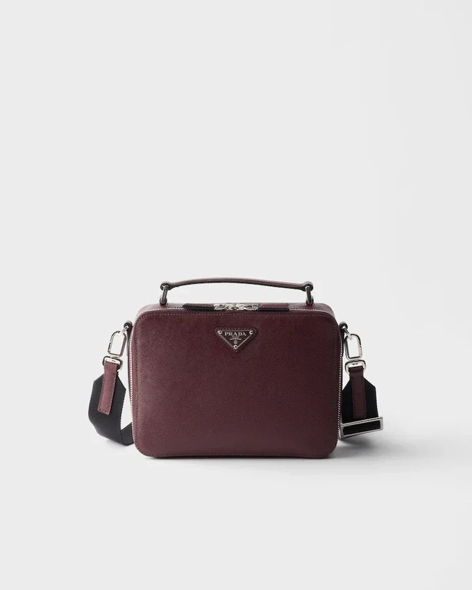 Saffianoレザー製のPrada Briqueバッグは、その洗練されたシルエットが際立っています。Pradaの象徴的な素材であるSaffianoレザーは、ラグジュアリーの代名詞であり、伝統的なイタリアの皮革製品製造の精神を体現しています。