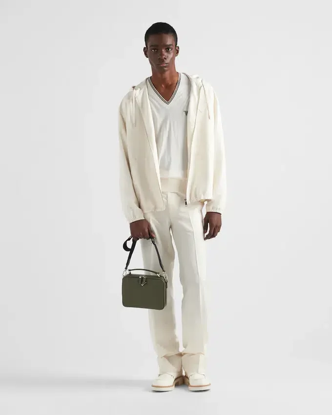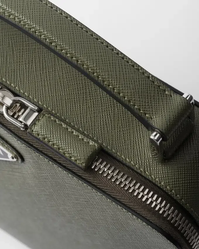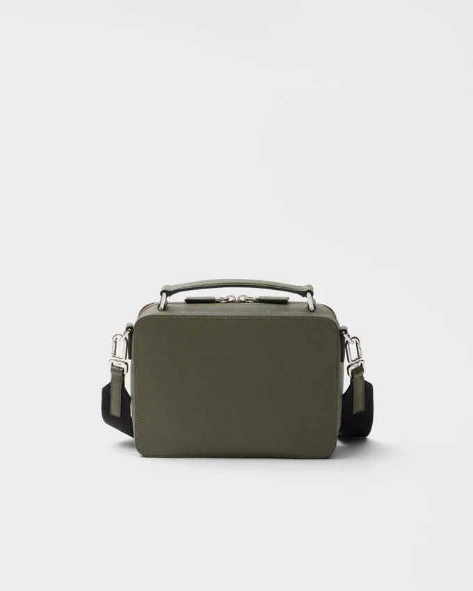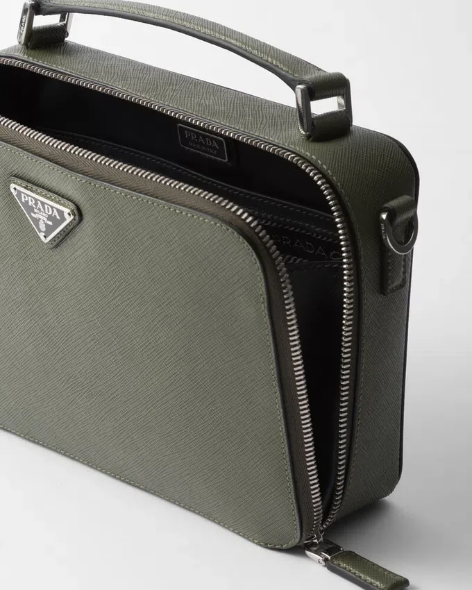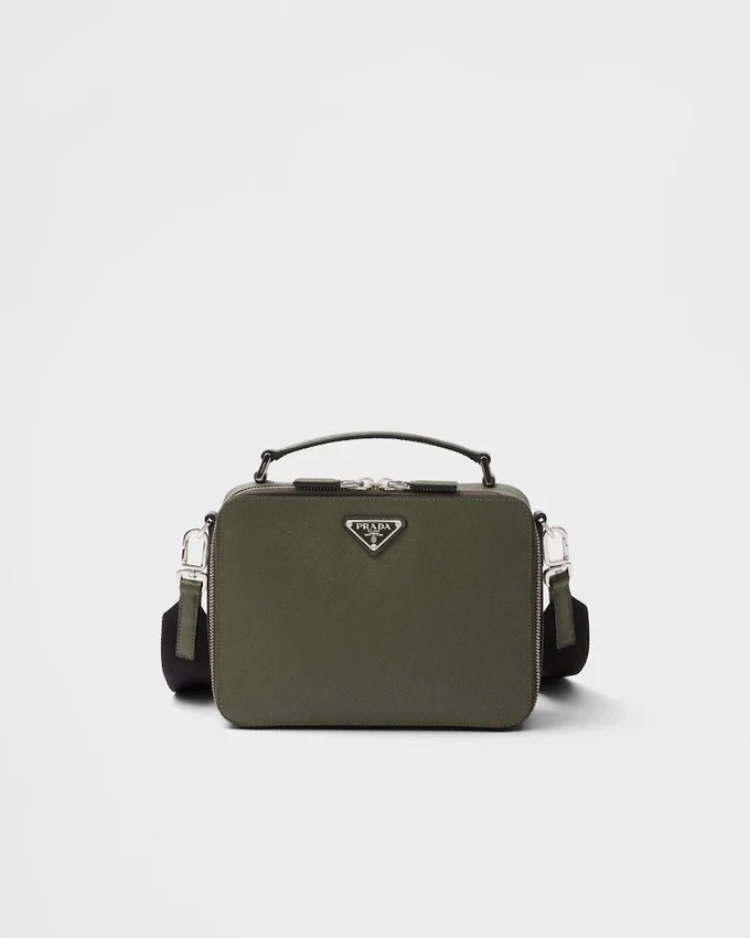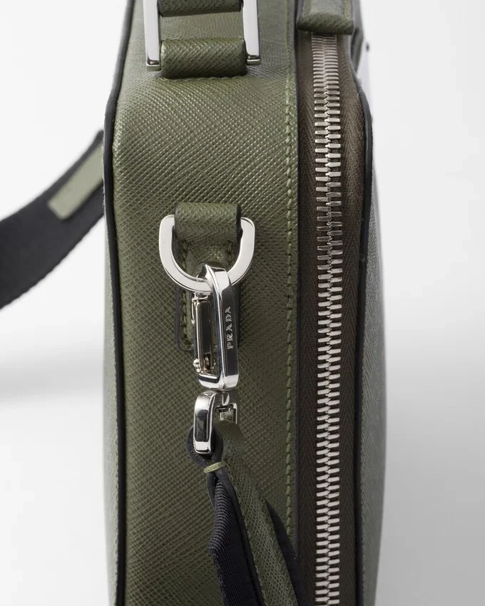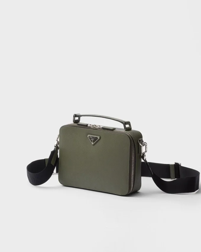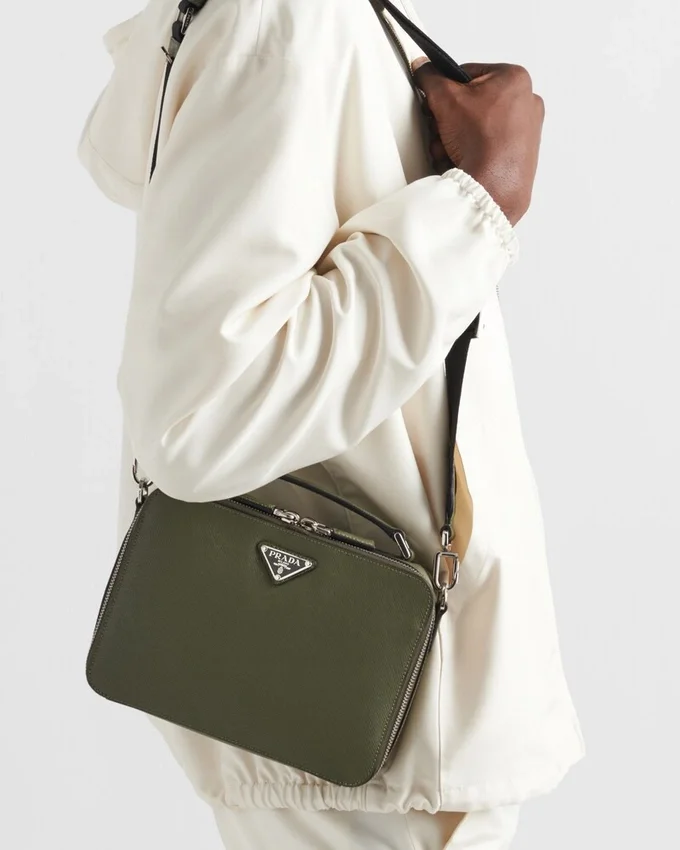 Saffianoレザー製のPrada Briqueバッグは、その洗練されたラインが際立っています。Pradaの象徴的な素材であるSaffianoレザーは、ラグジュアリーの代名詞であり、伝統的なイタリアの皮革製品製造を体現しています。