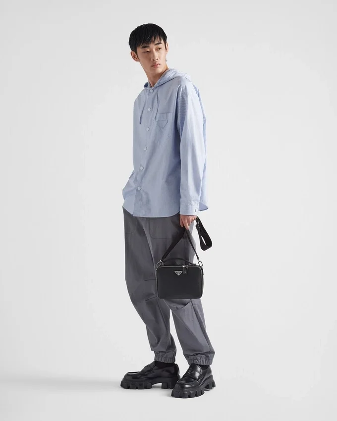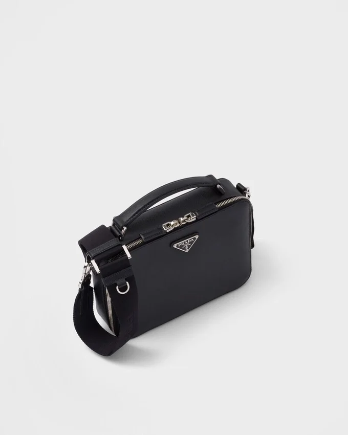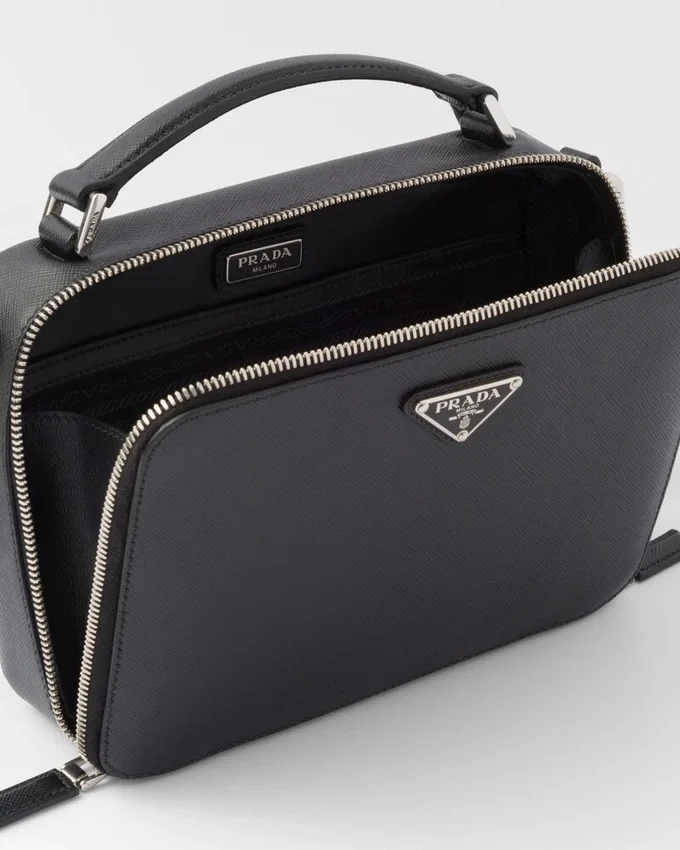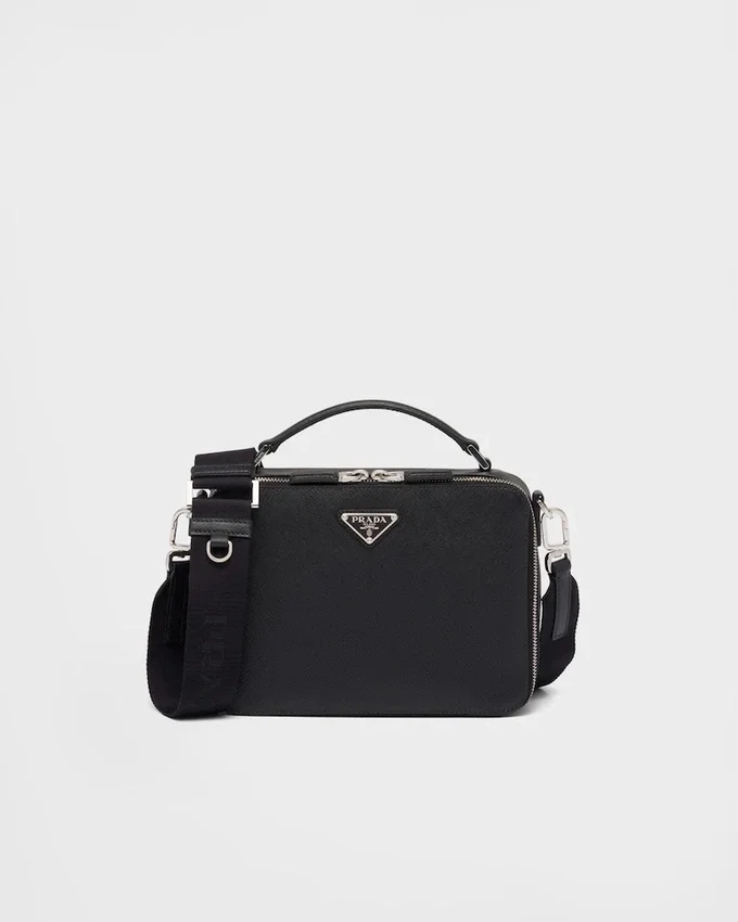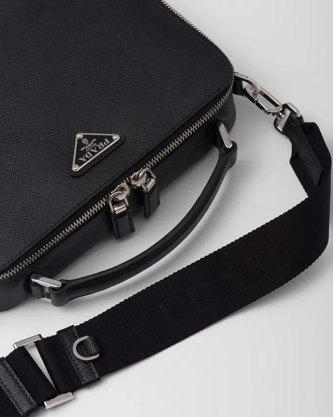 Saffianoレザー製のPrada Briqueバッグは、その洗練されたラインが際立っています。Pradaの象徴的な素材であるSaffianoレザーは、ラグジュアリーの代名詞であり、伝統的なイタリアのレザーグッズ製造を体現しています。