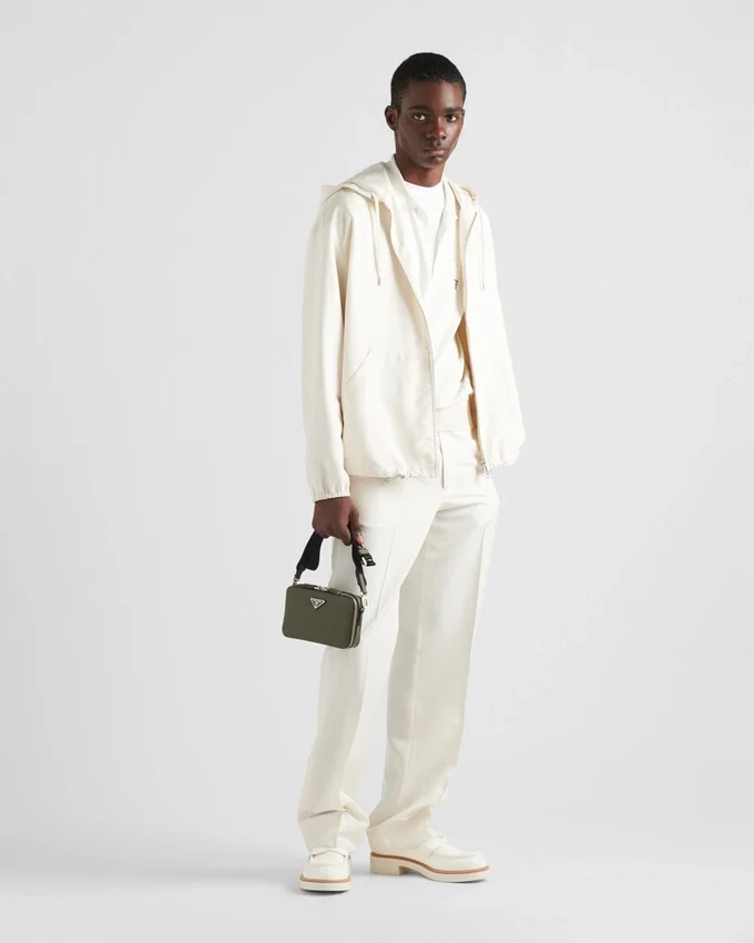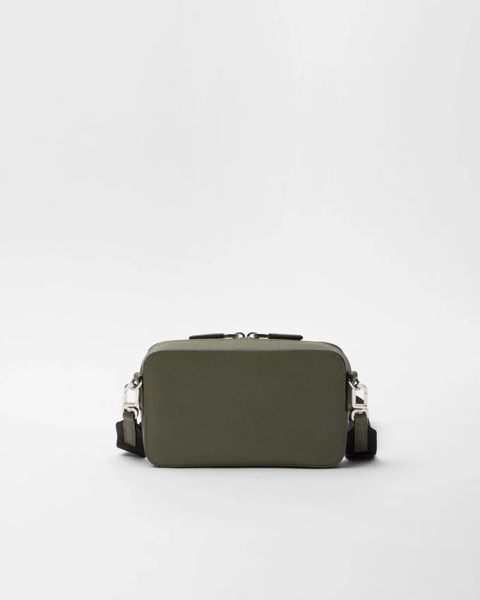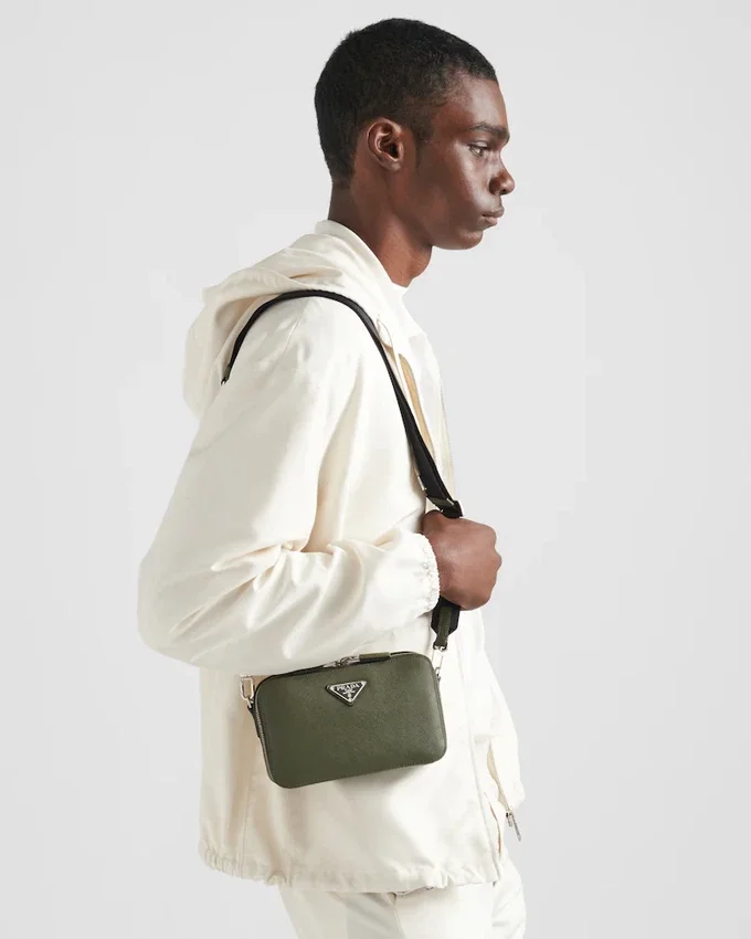 Prada Briqueバッグの洗練されたシルエットは、ワックス加工を施したSaffianoレザー特有のクロスハッチテクスチャーによってさらに引き立てられています。