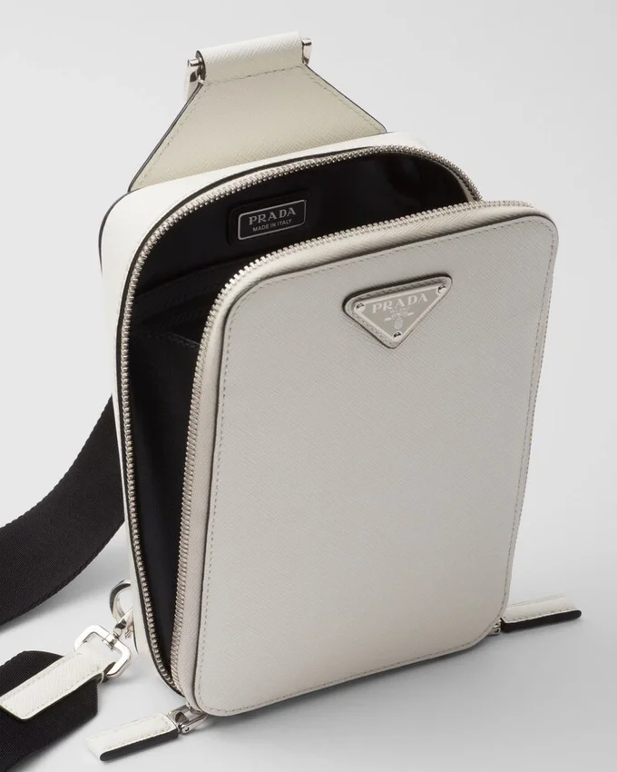 ハンドル、ショルダーストラップ、2つのファスナーポケットを備えたこのエレガントなSaffianoレザーのショルダーバッグは、洗練されたシルエットが特徴です。