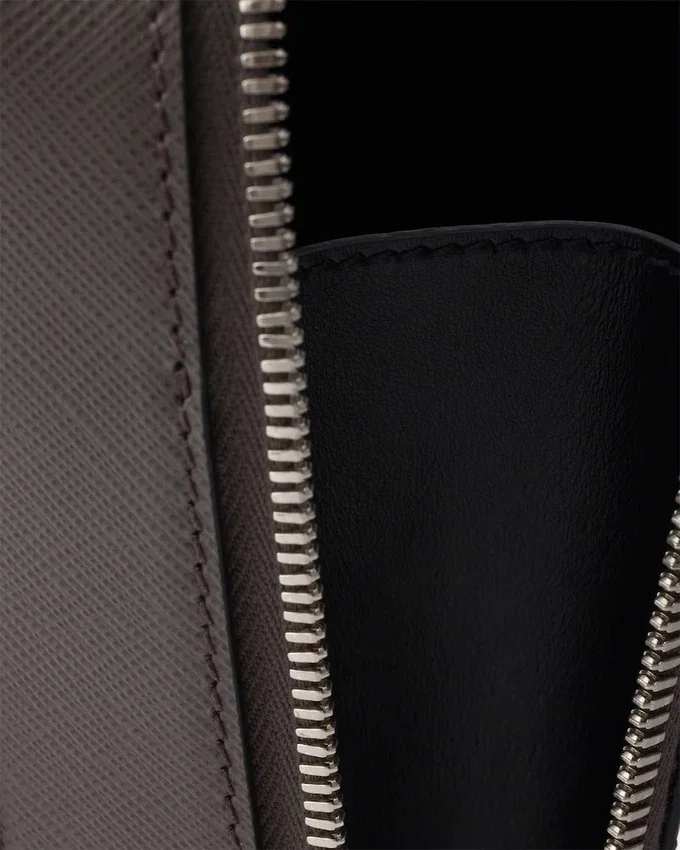 ハンドル、ショルダーストラップ、2つのジッパーポケットを備えたこのエレガントなSaffianoレザーのショルダーバッグは、洗練されたシルエットが特徴です。