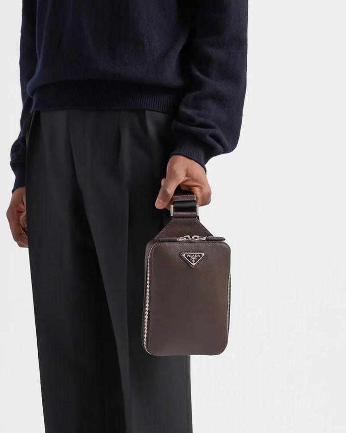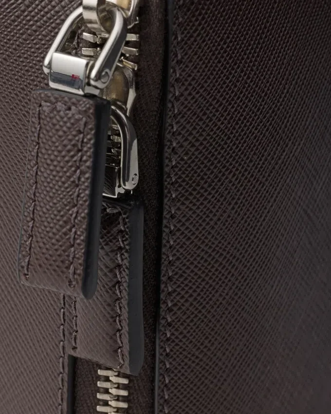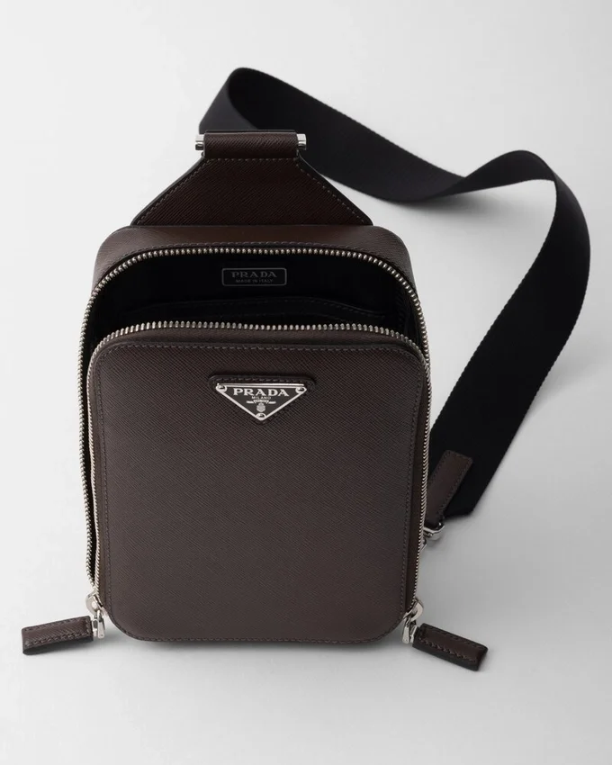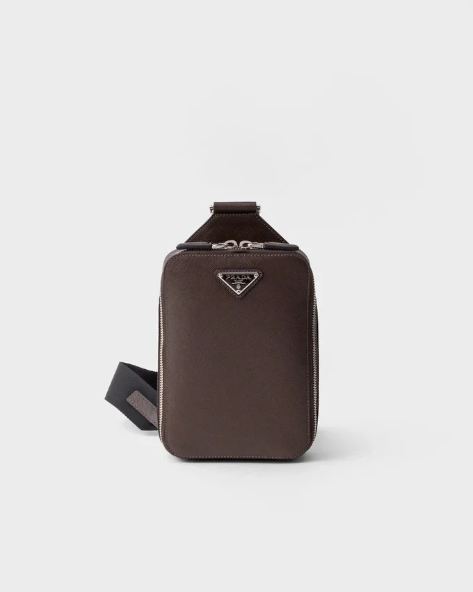 ハンドル、ショルダーストラップ、2つのジッパーポケットを備えたこのエレガントなSaffianoレザーのショルダーバッグは、洗練されたシルエットが特徴です。