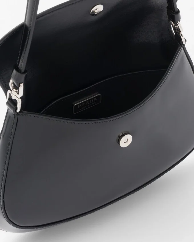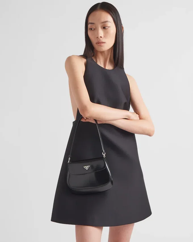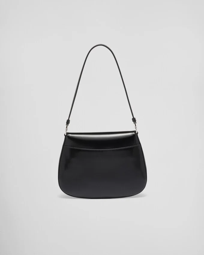 洗練された魅力を放つpradaの「Cleo」バッグは、1990年代のブランドの象徴的なデザインを現代風に再解釈したものです。底面と側面が丸みを帯びた独特の構造によって強調された滑らかな曲線が、このフラップバッグに柔らかく軽やかな印象を与えています。 Pradaのコレクションにおいて特徴的な、モダンで汎用性の高い素材であるブラッシュドレザーは、常に新しい組み合わせやコントラストを生み出すのに最適です。エナメル加工のトライアングルロゴがシルエットを彩ります。