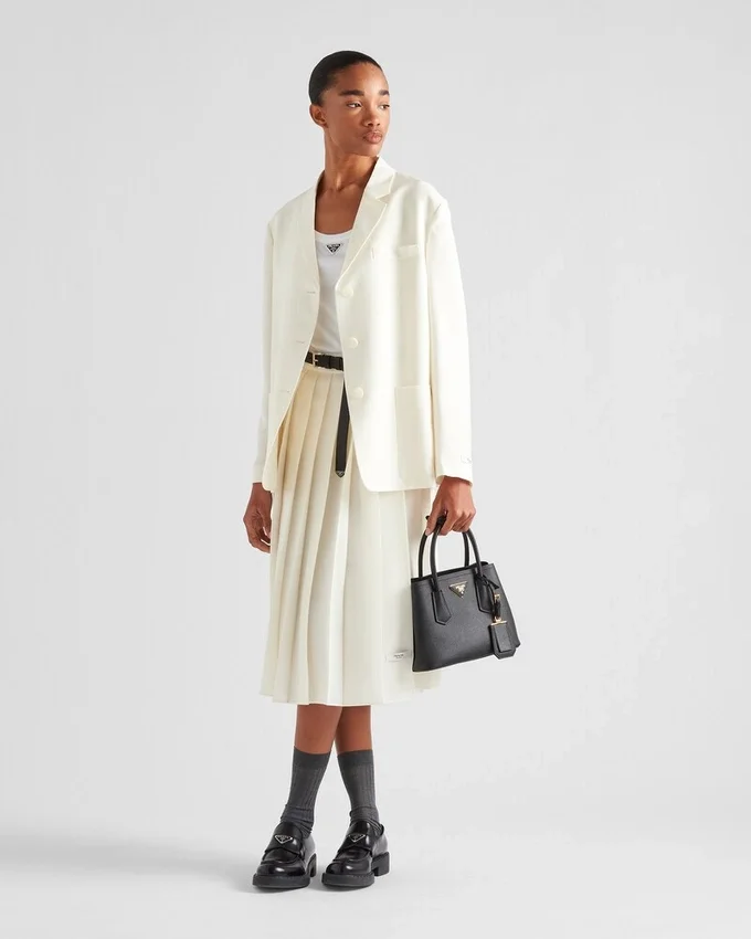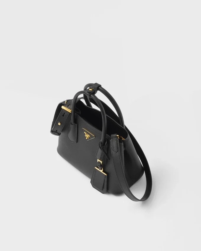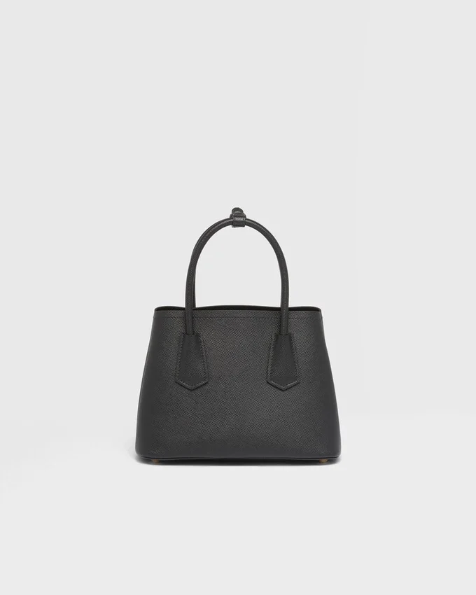 洗練された繊細なディテールが、ブランドの象徴的なデザインに新たな息吹を吹き込みます。例えば、汎用性が高く洗練された新しいミニデザインの「Prada Doubleバッグ」がそれです。前面を飾る象徴的なメタルレタリングロゴを、同系色のレザーの三角形が縁取り、取り外し可能なショルダーストラップにより、肩掛けやクロスボディバッグとしてお使いいただけます。