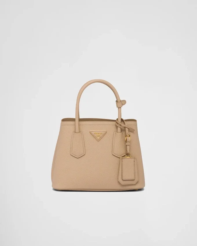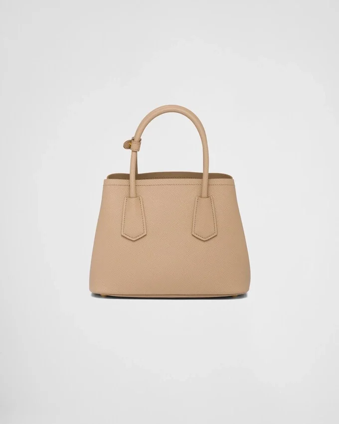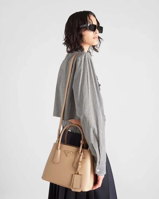 洗練された繊細なディテールが、ブランドの象徴的なデザインに新たな息吹を吹き込みます。例えば、汎用性が高く洗練された新しいミニデザインの「Prada Doubleバッグ」などです。前面を飾る象徴的なメタルレタリングロゴは、同系色のレザーの三角形フレームで囲まれており、取り外し可能なショルダーストラップにより、肩掛けやクロスボディバッグとしてお使いいただけます。