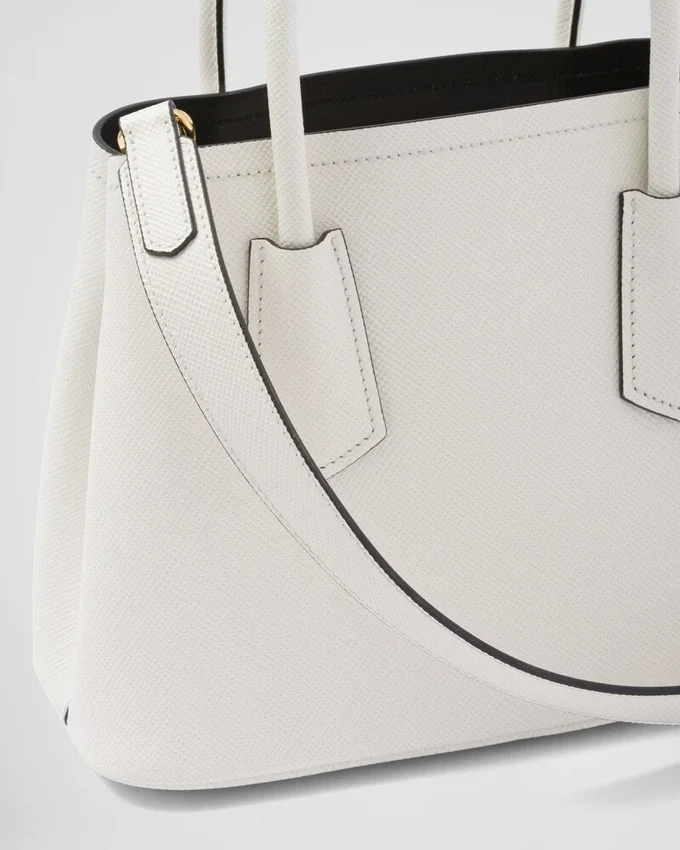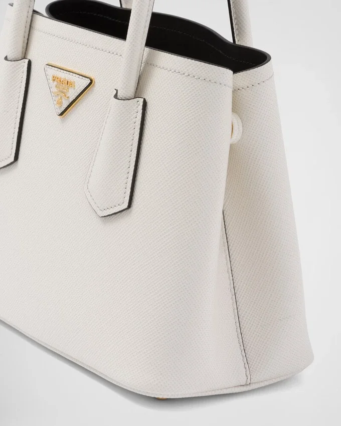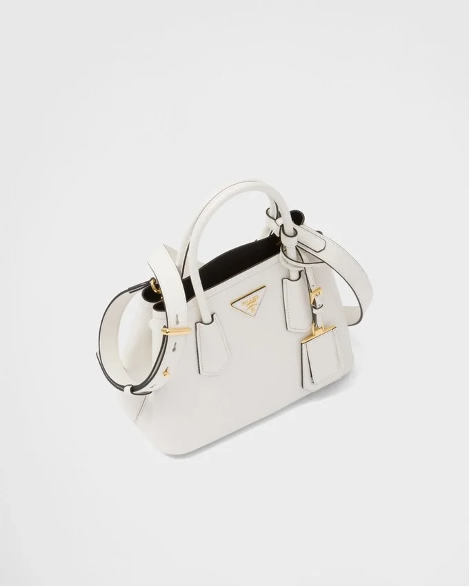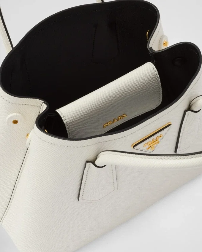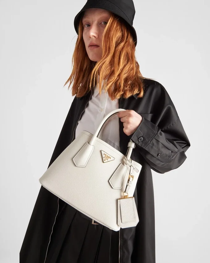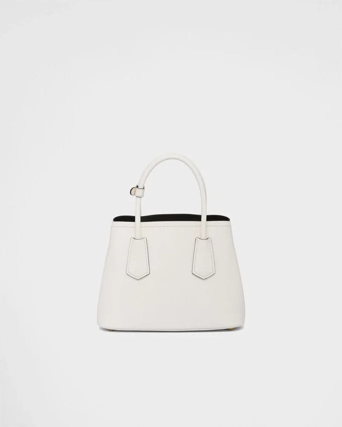洗練された繊細なディテールが、ブランドの象徴的なデザインに新たな息吹を吹き込みます。例えば、汎用性が高く洗練された新しいミニデザインの「Prada Doubleバッグ」などです。トーンを合わせたレザーの三角形が、前面を飾る象徴的なメタルレタリングロゴを縁取り、取り外し可能なショルダーストラップにより、肩掛けやクロスボディバッグとしてお使いいただけます。