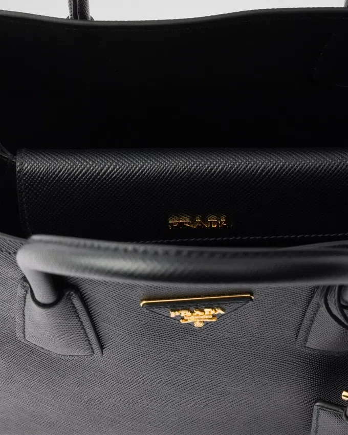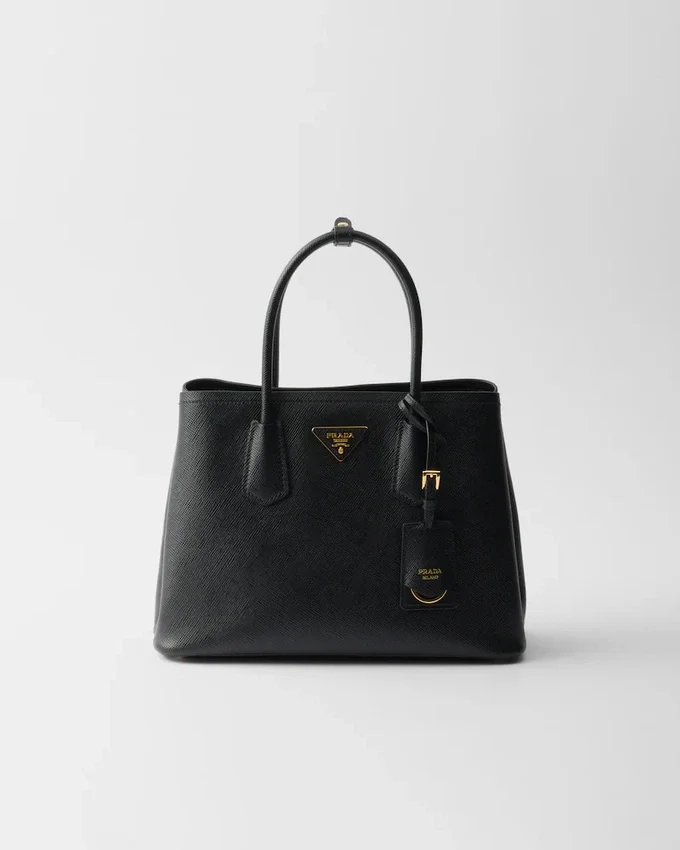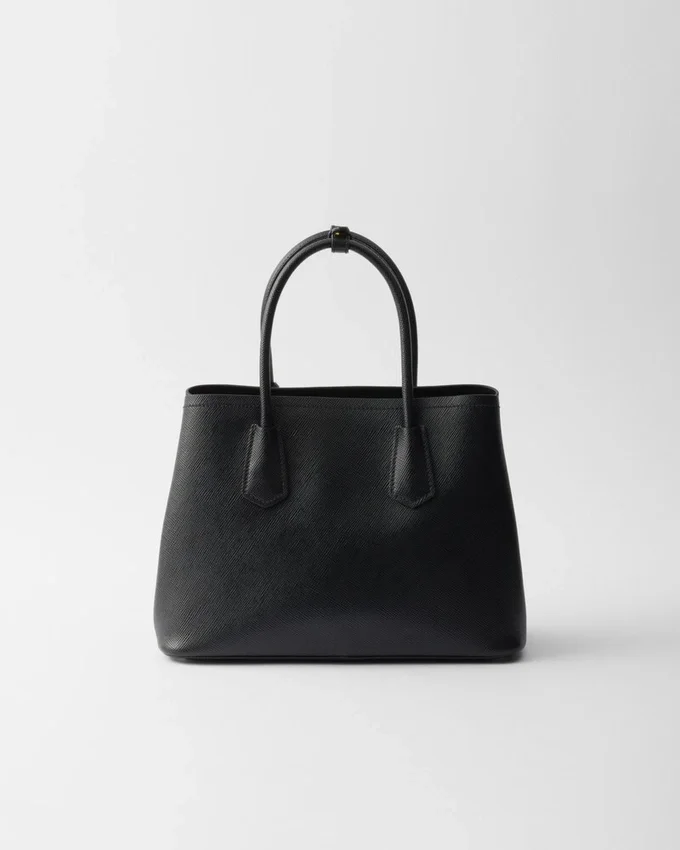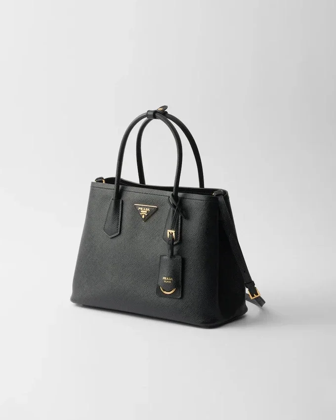 繊細で洗練されたディテールが、Prada Doubleハンドバッグのようなブランドの象徴的なデザインに新たな息吹を吹き込みます。トーンを合わせたレザーの三角形が、前面で輝く象徴的なメタルレタリングロゴを縁取り、取り外し可能なショルダーストラップにより、クロスボディバッグやショルダーバッグとしてもお使いいただけます。
