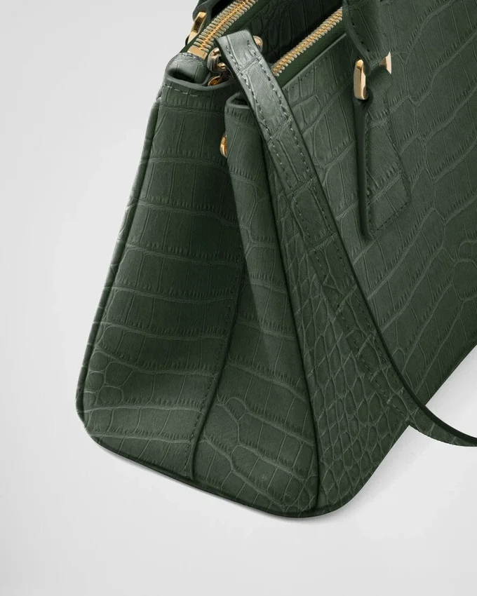 エレガントな四角い鱗を持つこの上質なクロコダイルレザーは、魅惑的で極めて洗練された光沢効果によって引き立てられています。 完全に手作業で仕上げられた貴重なレザーが、このPrada Galleriaバッグを特徴づけています。このバッグは、ブランドの時代を超えたエレガンスの真髄を表現しており、1913年にマリオ・プラダがミラノのヴィットーリオ・エマヌエーレ2世Galleriaにオープンした歴史的なPrada店にちなんで名付けられました。 このアクセサリーは、ラグジュアリーレザーグッズにおけるPradaの100年にわたる卓越性を体現しており、実用的なデザインと構造的なラインを通じて、万華鏡のような現代性を解釈しようとするブランドの現代性とスタイルのアイデンティティを反映しています。