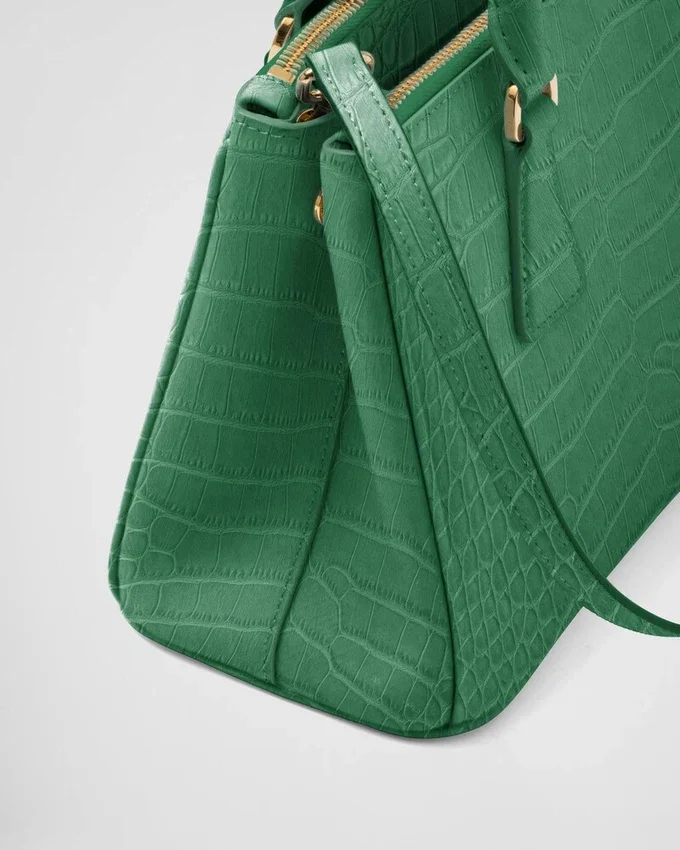 魅惑的で極めて洗練された光沢感が、エレガントな四角い鱗を持つこの上質なクロコダイルレザーを引き立てています。すべて手作業で仕上げられたこの貴重なレザーは、ブランドの時代を超えたエレガンスの真髄を表現する「PRADA Galleria」バッグを象徴しており、その名は1913年にマリオ・プラダがミラノのヴィットーリオ・エマヌエーレ2世Galleriaにオープンした歴史的なプラダ店舗に由来しています。 このアクセサリーは、Pradaが100年にわたり培ってきた高級レザーグッズの卓越性を体現するとともに、実用的なデザインと構造的なラインを通じて、万華鏡のような現代性を解釈しようとするブランドの現代性とスタイルのアイデンティティを映し出しています。