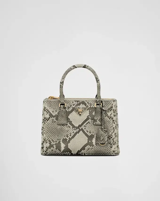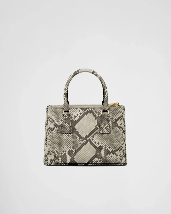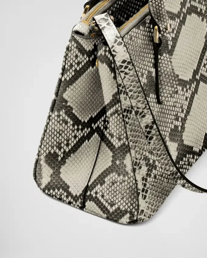 柔らかくしなやかな上質なパイソンレザーが、このアクセサリーを引き立てています。素材の異なる色合いが特徴のコンパクトなデザインは、一点一点に唯一無二の個性を与えています。83のパーツから構成されるPRADA「Galleria」バッグの製作は、工業的な精密さと、手作業でしか成し得ない洗練された職人技の精度が見事に融合したものです。 そのデザインは、洗練されたエレガンスと本質的な実用性を兼ね備え、歴史と現代性を融合させた、形と機能を調和させた美学を体現しています。「タイムレス」という概念を定義づけた「Galleria バッグ」は、21世紀におけるPradaのアイデンティティを象徴する存在となっています。