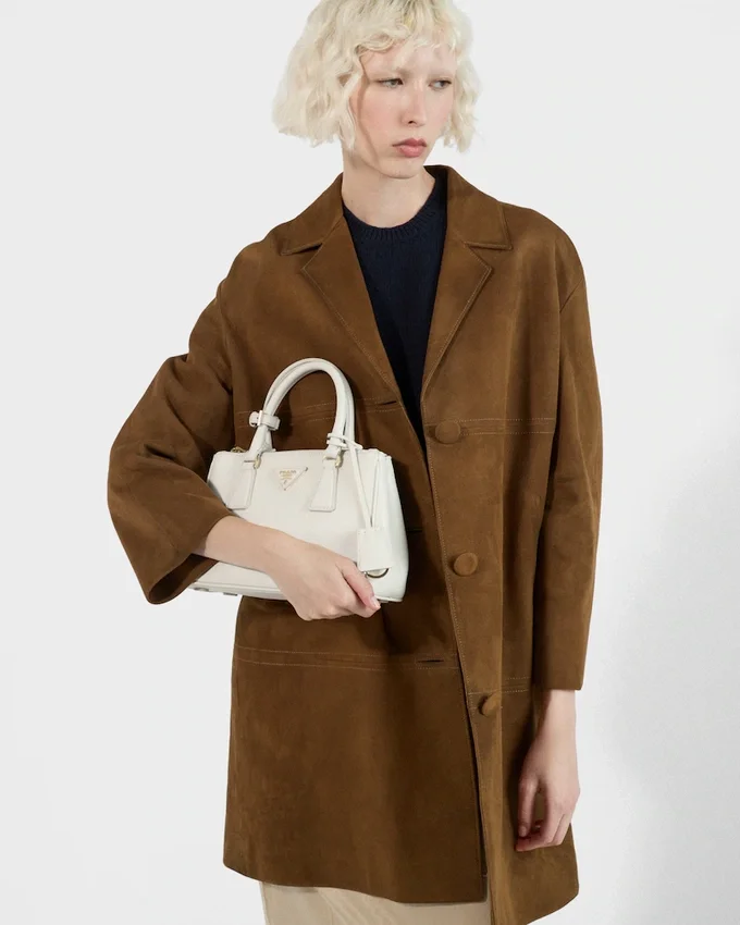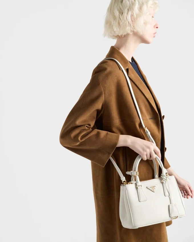 洗練されたタイムレスなPrada Galleriaバッグは、ブランドのDNAに宿る工業的な精度と緻密な職人技を融合させています。80点以上のパーツを手作業で組み立てたこのスタイルは、1913年にミラノのGalleria Vittorio Emanuele IIにオープンした歴史的な店舗を称えるものです。