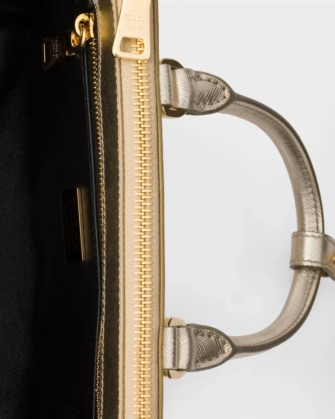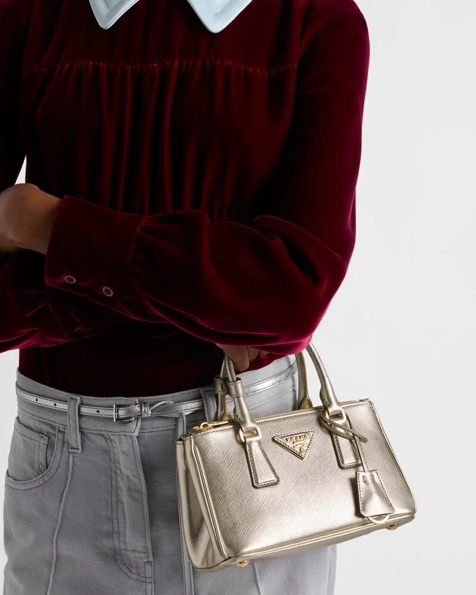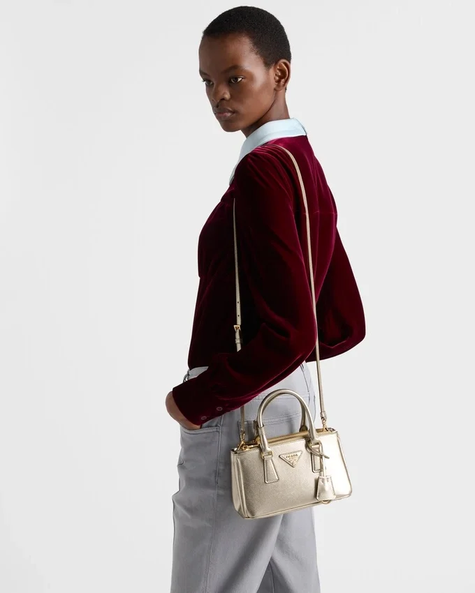 エレガントで時代を超えたデザインを持つPrada Galleria バッグは、Prada のアイデンティティの多面性を反映しています。象徴的なスタイルをミニサイズで表現し、新たに縦長のシルエットを採用したこのバッグには、取り外し可能なショルダーストラップが付属しており、クロスボディバッグとしてもお使いいただけます。 光沢のある仕上げによって強調された、Saffianoレザーの象徴的なクロスハッチテクスチャーが、このバッグに独特で多用途な個性を与えています。
