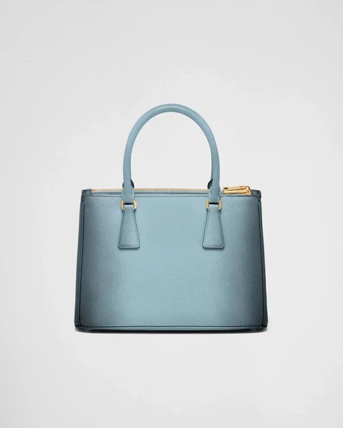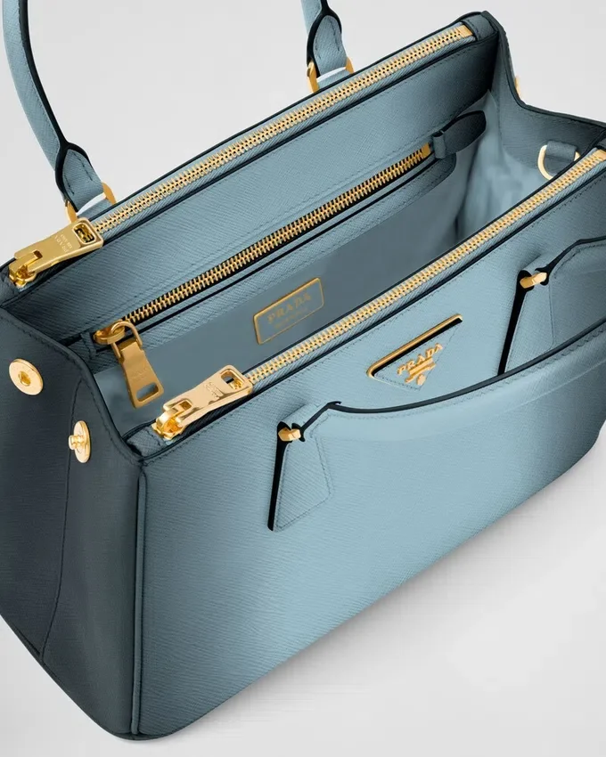 Prada Galleria バッグの構造的なラインを備えた実用的なデザインは、手作業で施された特別なエアブラシ加工によってさらに引き立てられています。この加工は、マリオ・プラダが特許を取得したカーフレザー「Saffiano」で作られたバッグのシルエットを際立たせています。Saffianoは、傷や水に強く、クロスハッチのテクスチャーが特徴的です。 ラグジュアリーレザーグッズにおけるPradaの100年にわたる卓越性を体現するこのアクセサリーは、万華鏡のような現代性を解釈しようとするブランドのモダニティとスタイルのアイデンティティを映し出しています。「タイムレス」という概念を確立したGalleriaバッグは、21世紀におけるPradaのアイデンティティの象徴となっています。