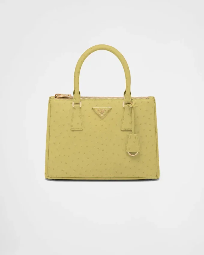 洗練された魅力を持つ、独特な天然のポルカドット模様が特徴の上質なダチョウ革は、優雅さと繊細さを兼ね備えています。 貴重でありながら非常に耐久性に優れた、手作業で仕立てられたレザーが、このアクセサリーを際立たせています。83のパーツから構成されるPrada Galleria バッグの製作は、工業的な精密さと、手作業でしか成し得ない洗練された職人技の正確さが真に融合したものです。そのデザインは、クリーンでエレガントでありながら本質的に実用的であり、歴史と現代性を融合させた、形と機能を調和させた美的言語を体現しています。 「タイムレス」という概念そのものを体現する「Galleria」バッグは、21世紀におけるPradaのアイデンティティの象徴となっています。