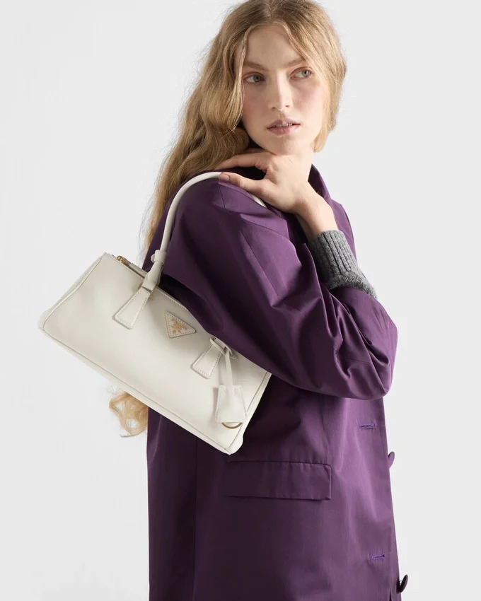 Prada Galleria バッグの製造には、工業的な精密さと、手作業でしか実現できない洗練された職人技の正確さが融合しています。このスタイルのデザインは、エレガントで縦長のシルエットを再解釈したものです。「タイムレス」という概念を生み出したGalleria バッグは、Pradaのアイデンティティを象徴する存在となっています。