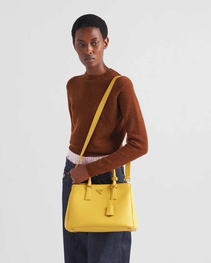 洗練されたタイムレスなPrada Galleriaバッグは、工業的な精度と、ブランドのDNAに刻まれた洗練された緻密な職人技を融合させています。80点以上のパーツを手作業で組み立てたこのスタイルは、1913年にミラノのヴィットーリオ・エマヌエーレ2世Galleriaにオープンした歴史ある店舗を称えるものです。
