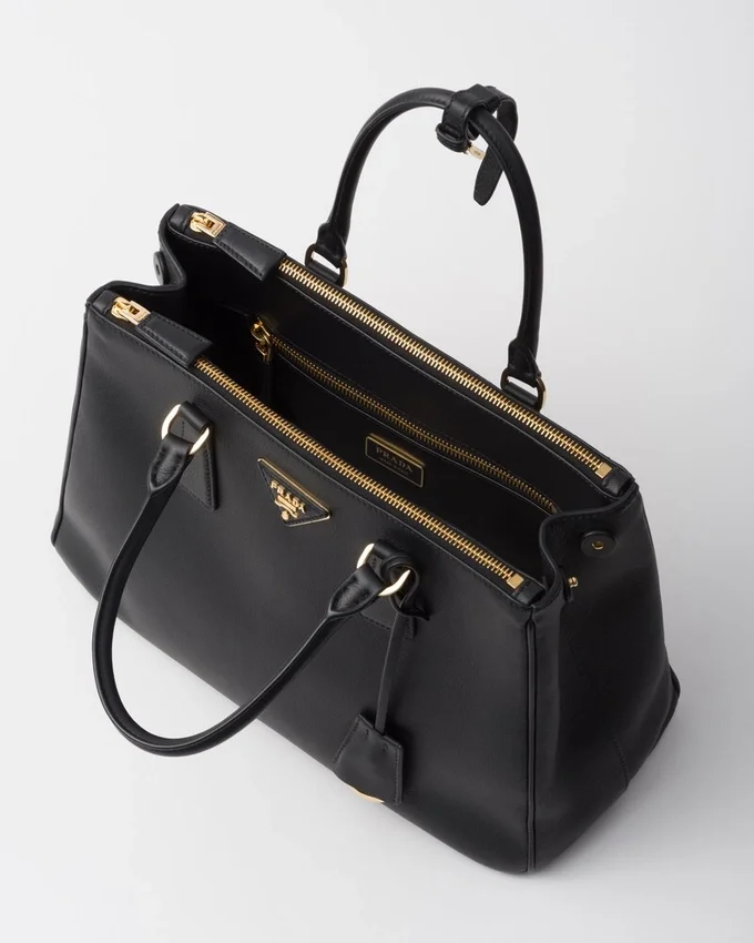 洗練されたタイムレスなPrada Galleriaバッグは、工業的な精度と、ブランドのDNAに刻まれた洗練された緻密な職人技を融合させています。80点以上のパーツを手作業で組み立てたこのスタイルは、1913年にミラノのヴィットーリオ・エマヌエーレ2世Galleriaにオープンした歴史的な店舗を称えるものです。 象徴的な3つのコンパートメントとゴールドトーンのメタルハードウェアが特徴のこのレザーアクセサリーは、象徴的なトライアングルロゴで仕上げられています。