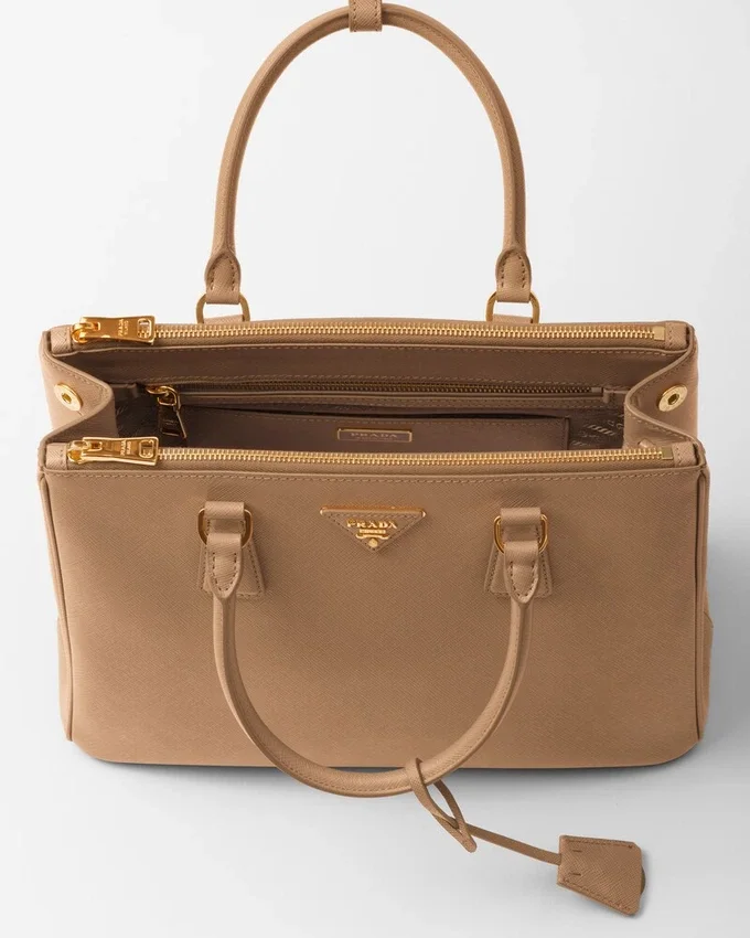 83のパーツから構成されるPrada Galleria バッグの製作は、工業的な精密さと、手作業でしか成し得ない洗練された職人技の精度が見事に融合したものです。そのデザインは、クリーンでエレガントでありながら本質的に実用的であり、歴史と現代性を融合させた、形と機能を調和させた美的言語を体現しています。 「タイムレス」という概念そのものを体現するGalleriaバッグは、21世紀におけるPradaのアイデンティティの象徴となっています。ラージサイズで展開されるこのアクセサリーは、マリオ・Pradaが特許を取得した、傷や水に強いクロスハッチのテクスチャーが特徴的な、アイコニックなSaffianoカーフレザーを使用しています。