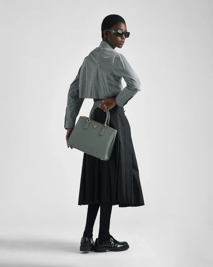 83のパーツから構成されるPrada Galleria バッグの製作は、工業的な精密さと、手作業でしか成し得ない洗練された職人技の正確さが真に融合したものです。そのデザインは、クリーンでエレガントでありながら本質的に実用的であり、歴史と現代性を融合させた、形と機能を調和させた美的言語を体現しています。 「タイムレス」という概念そのものを体現するGalleriaバッグは、21世紀におけるPradaのアイデンティティの象徴となっています。ラージサイズで展開されるこのアクセサリーは、マリオ・Pradaが特許を取得した、傷や水に強いクロスハッチのテクスチャーが特徴的な、アイコニックなSaffianoレザーを使用しています。