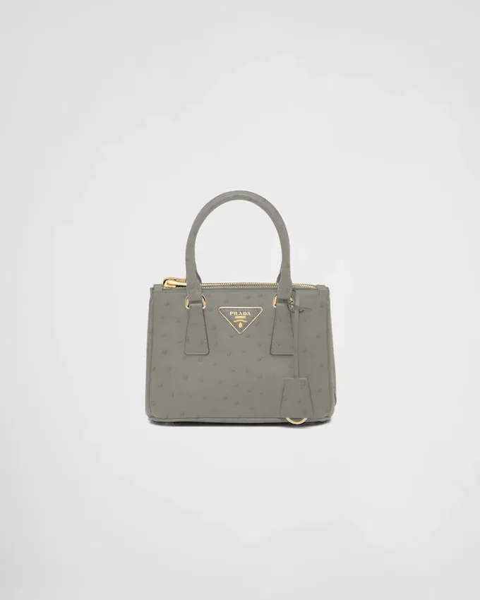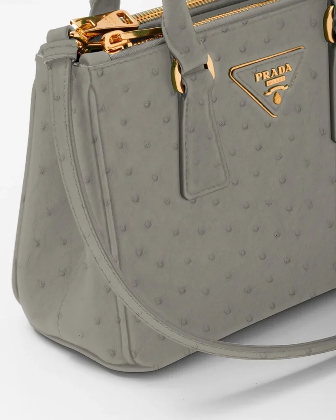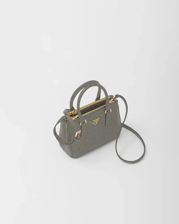 洗練された魅力を持つ、独特な天然のポルカドット柄が特徴のファイン・ダチョウ革は、優雅さと繊細さを兼ね備えています。 手作業で仕上げられた、貴重でありながら非常に耐久性の高いレザーが、このPrada Galleriaバッグを際立たせています。このバッグは、ブランドの時代を超えたエレガンスの真髄を表現しており、1913年にマリオ・プラダがミラノのヴィットーリオ・エマヌエーレ2世Galleriaにオープンした歴史的なPrada店にちなんで名付けられました。 このアクセサリーは、ラグジュアリーレザーグッズにおけるPradaの100年にわたる卓越性を体現しており、実用的なデザインと構造的なラインを通じて、万華鏡のような現代性を解釈しようとするブランドの現代性とスタイルのアイデンティティを反映しています。
