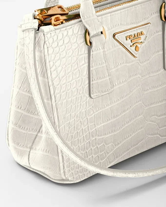 エレガントな四角い鱗を持つこの上質なクロコダイルレザーは、魅惑的で極めて洗練された光沢感が際立っています。 完全に手作業で仕上げられたこの貴重なレザーが、Prada・Galleria・バッグを特徴づけています。このバッグは、ブランドの時代を超越したエレガンスの真髄を表現しており、1913年にマリオ・プラダがミラノのヴィットーリオ・エマヌエーレ2世Galleriaにオープンした歴史的なPrada店にちなんで名付けられました。 すっきりとしたシンプルなラインを持つこの洗練されたアクセサリーは、前世紀の象徴的なドクターズバッグを彷彿とさせ、フォルムと機能、そして歴史と現代性を融合させた美的言語を生み出しています。「タイムレス」という概念を生み出した「Galleria」バッグは、21世紀におけるPradaのアイデンティティの象徴となっています。